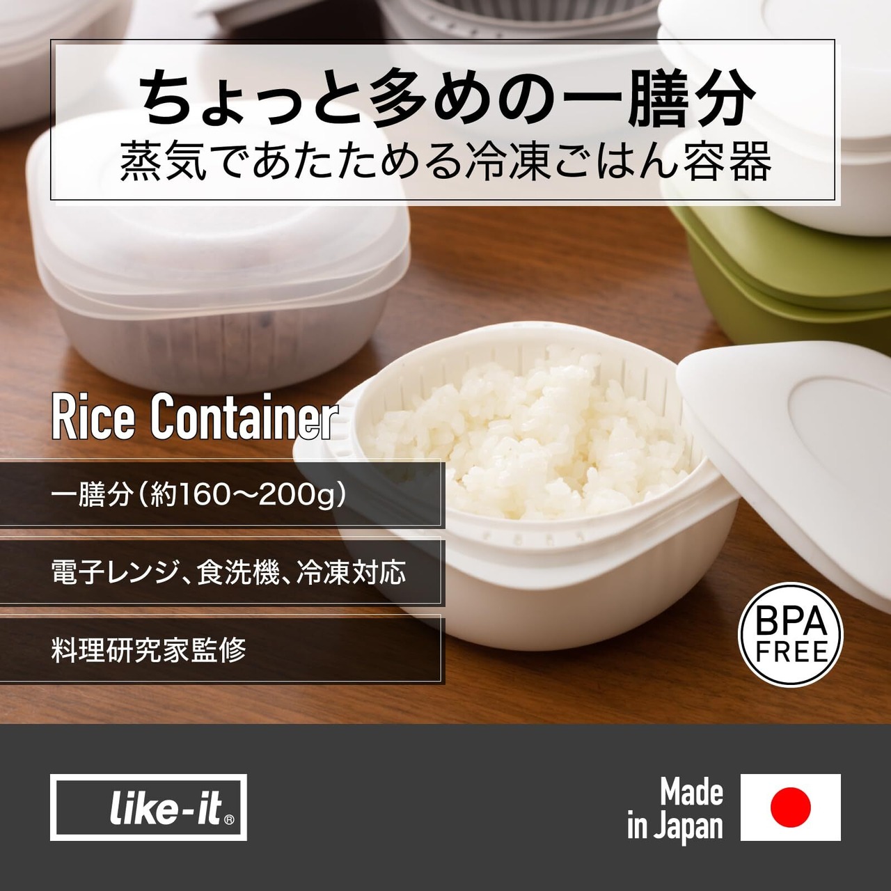 ライクイット (like-it) 蒸気であたためる冷凍ごはん容器 2個組 LBK-21 2P セット グレー 一膳分(160〜200g) 水切れの良い ミニザル付き (電子レンジ/食器洗い乾燥機対応) 日本製