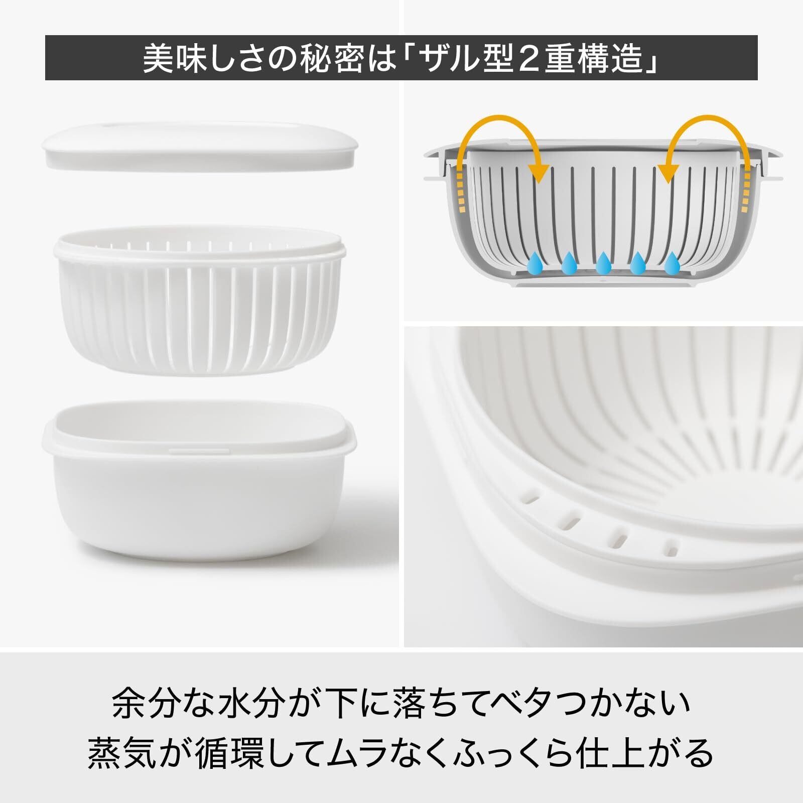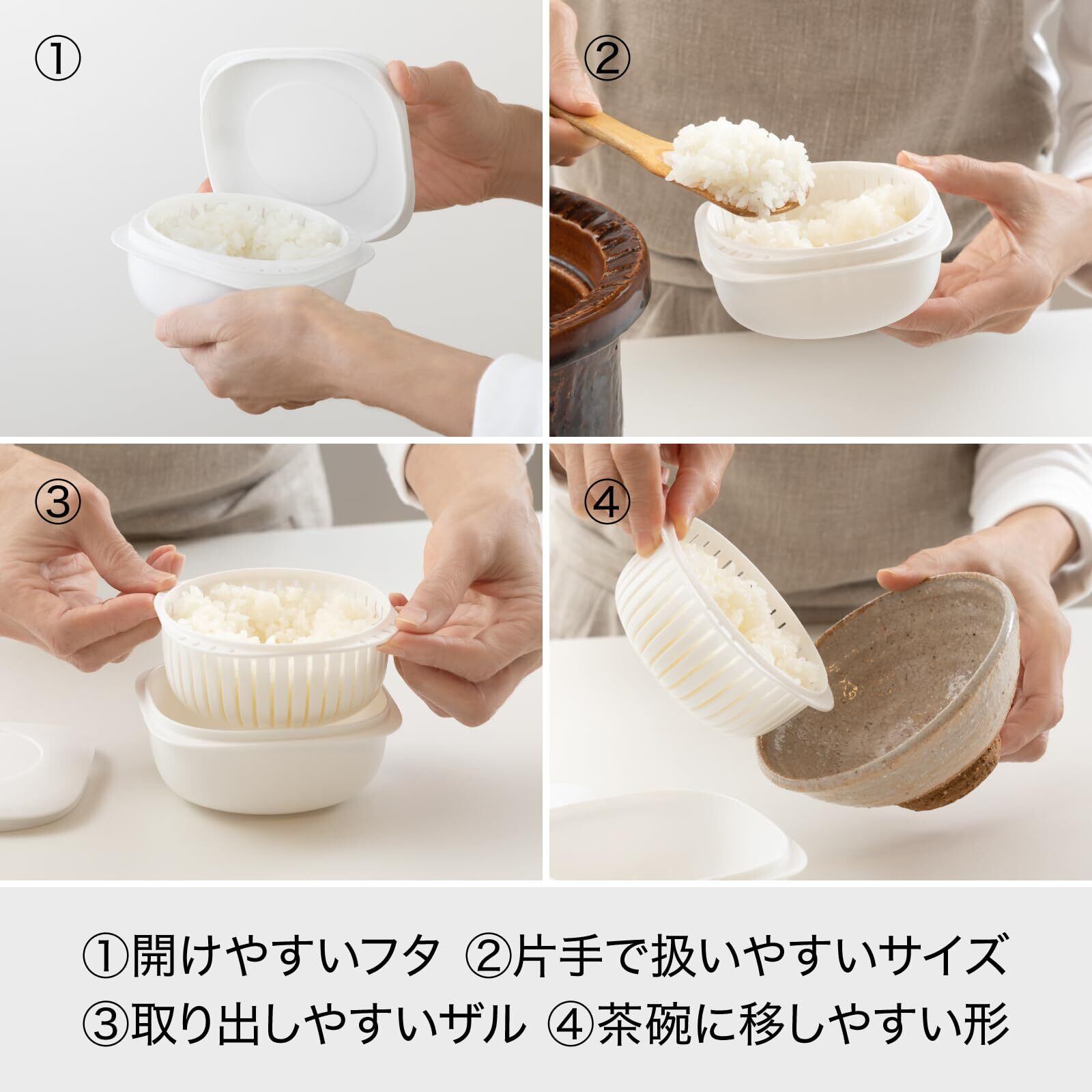 ライクイット (like-it) 蒸気であたためる冷凍ごはん容器 2個組 LBK-21 2P セット クリア 一膳分(160〜200g) 水切れの良い ミニザル付き (電子レンジ/食器洗い乾燥機対応) 日本製