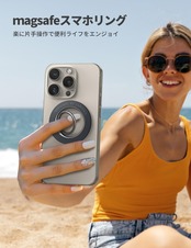 【強力磁力でしっかりと吸着】約1000gまでの荷重に耐える強力磁力です。iPhone 16/15/14/13シリーズをしっかりと吸着できます。マグネット式スマホリングで、iPhone MagSafe シリーズ本体やMagSafe搭載ケースに簡単に装着できます。また、マグネットなので跡を残さず取り外し可能です。テープ跡や糊残りを気にせずお使いのスマホをきれいな状態でご利用いただけます。
