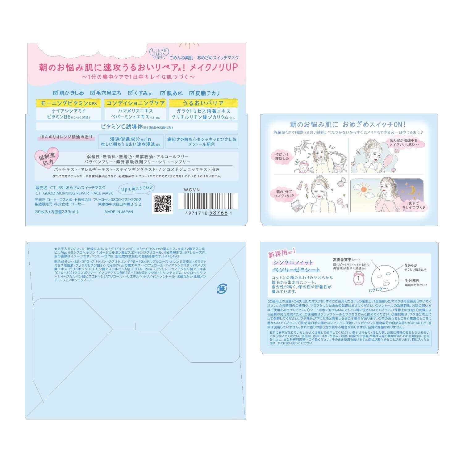 クリアターン ごめんね素肌 おめざめスイッチ フェイスパック ナイアシンアミド ビタミンB6配合 低刺激処方 大容量 30枚入 KOSE