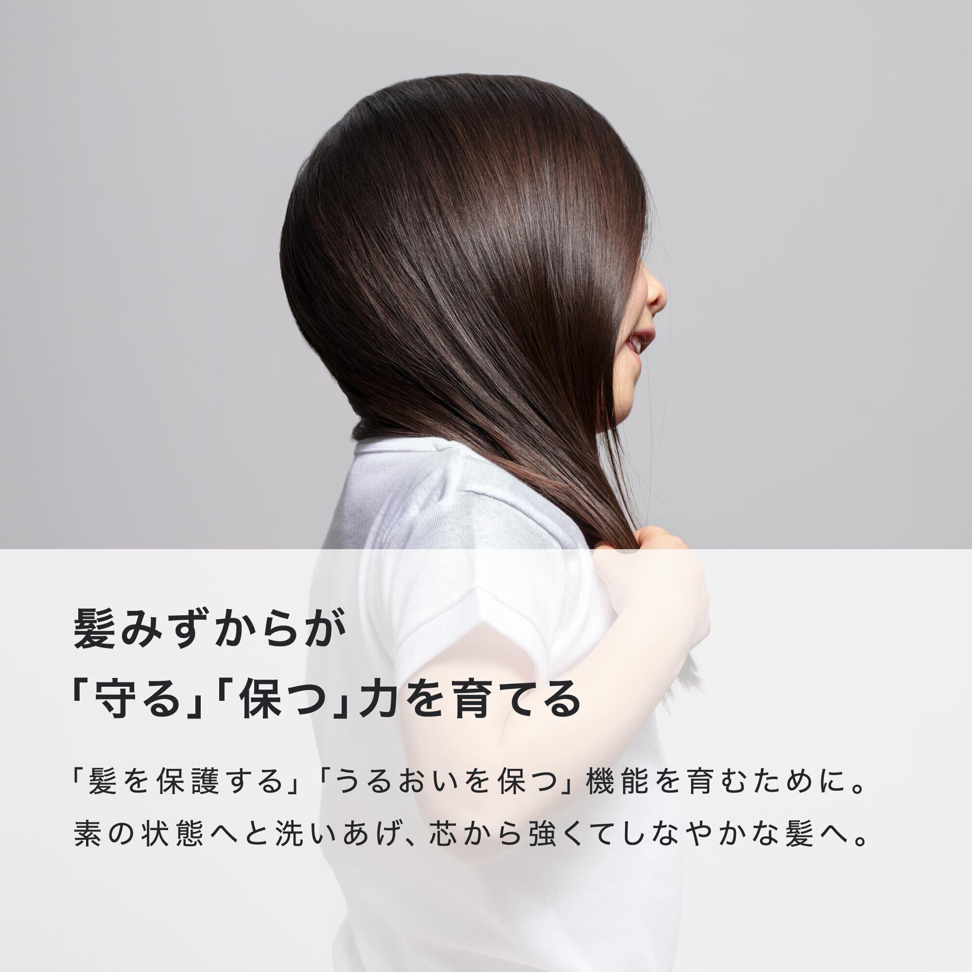 【髪みずからが「守る」「保つ」力を育てる】2~12歳までは、一生の髪質を左右する大切な時期。かといって、過剰なケアは禁物です。重要なのは、人間が本来持っている「髪を保護しよう」「うるおいを保とう」とする機能をしっかり育むこと。有機栽培された植物のチカラで、髪そのものを素の状態へと洗いあげ、芯から強くてしなやかな髪を育てましょう。