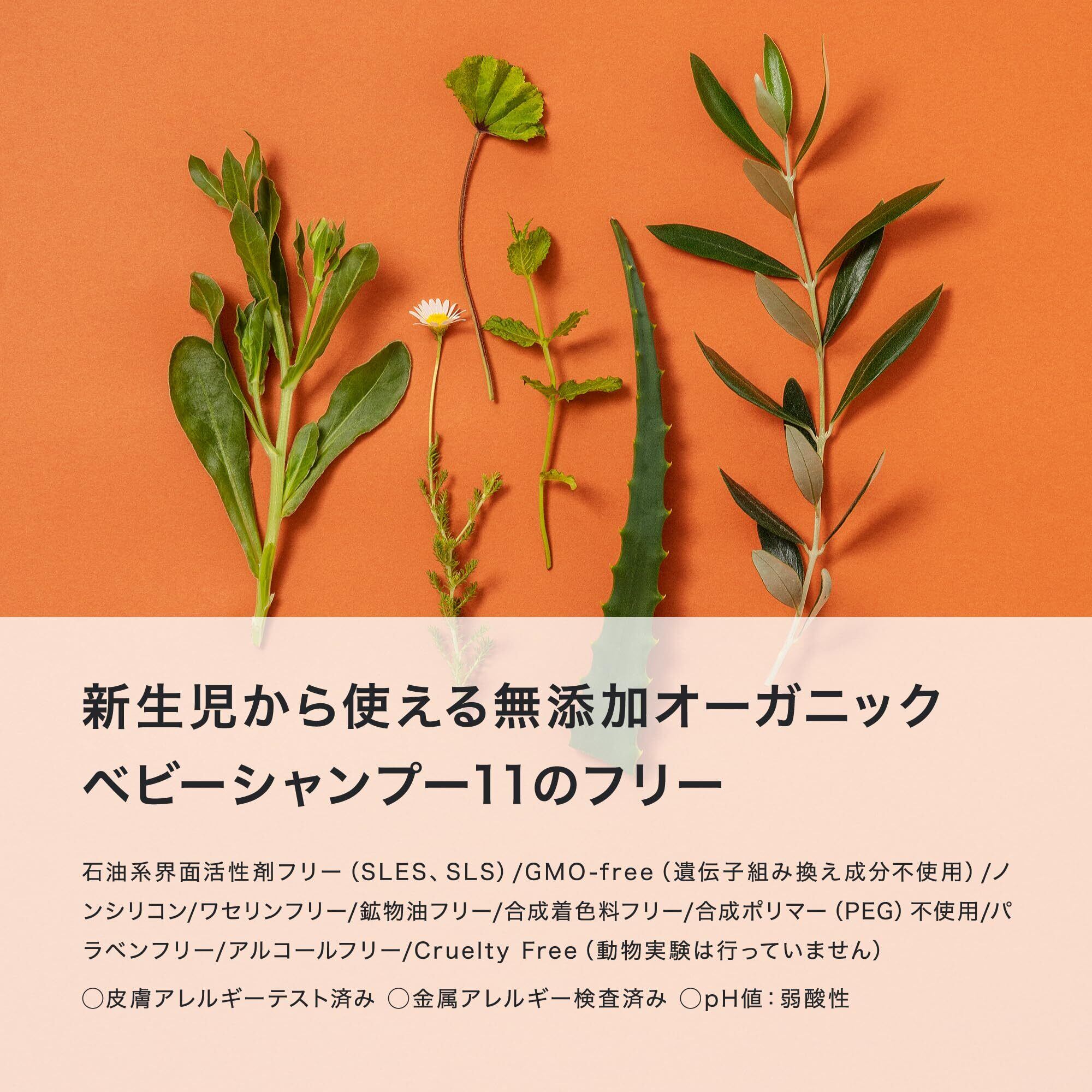 【一生を共にする髪質のためのオーガニックシャンプー】うぶ毛が髪の毛へと生え変わる2歳ごろから大人の髪質へと成長する12歳までは、一生の髪質を左右する大切な時期。リキッドタイプのシャンプーは、髪が健やかに育つカギとなる常在菌にやさしい頭皮環境を育むための11の無添加*、独自のオーガニック処方。コーティング剤で甘やかすことなく、アロエベラ液汁※ 、カミツレ花エキス※ 、ゼニアオイエキス※ など有機栽培された植物の力で素の髪を大切に、みずからがうるおう髪質のキソを育みます。