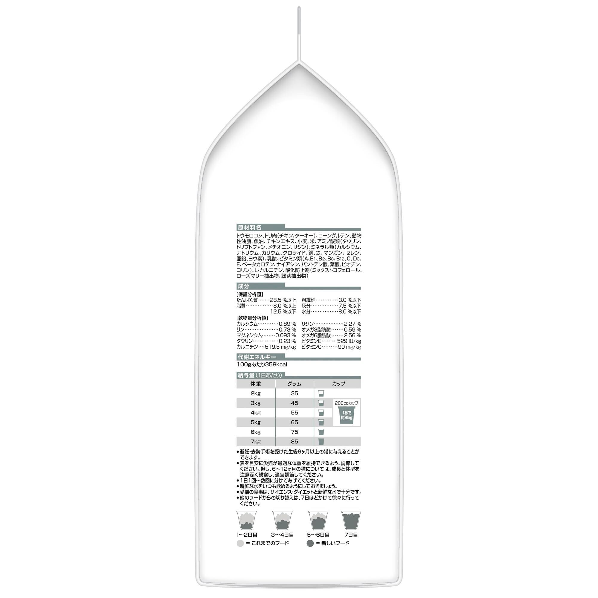太りやすくなる避妊・去勢後の成猫の体重管理と健康をサポートする、栄養バランスに優れたキャットフード。適切なミネラルバランスで下部尿路の健康を維持。