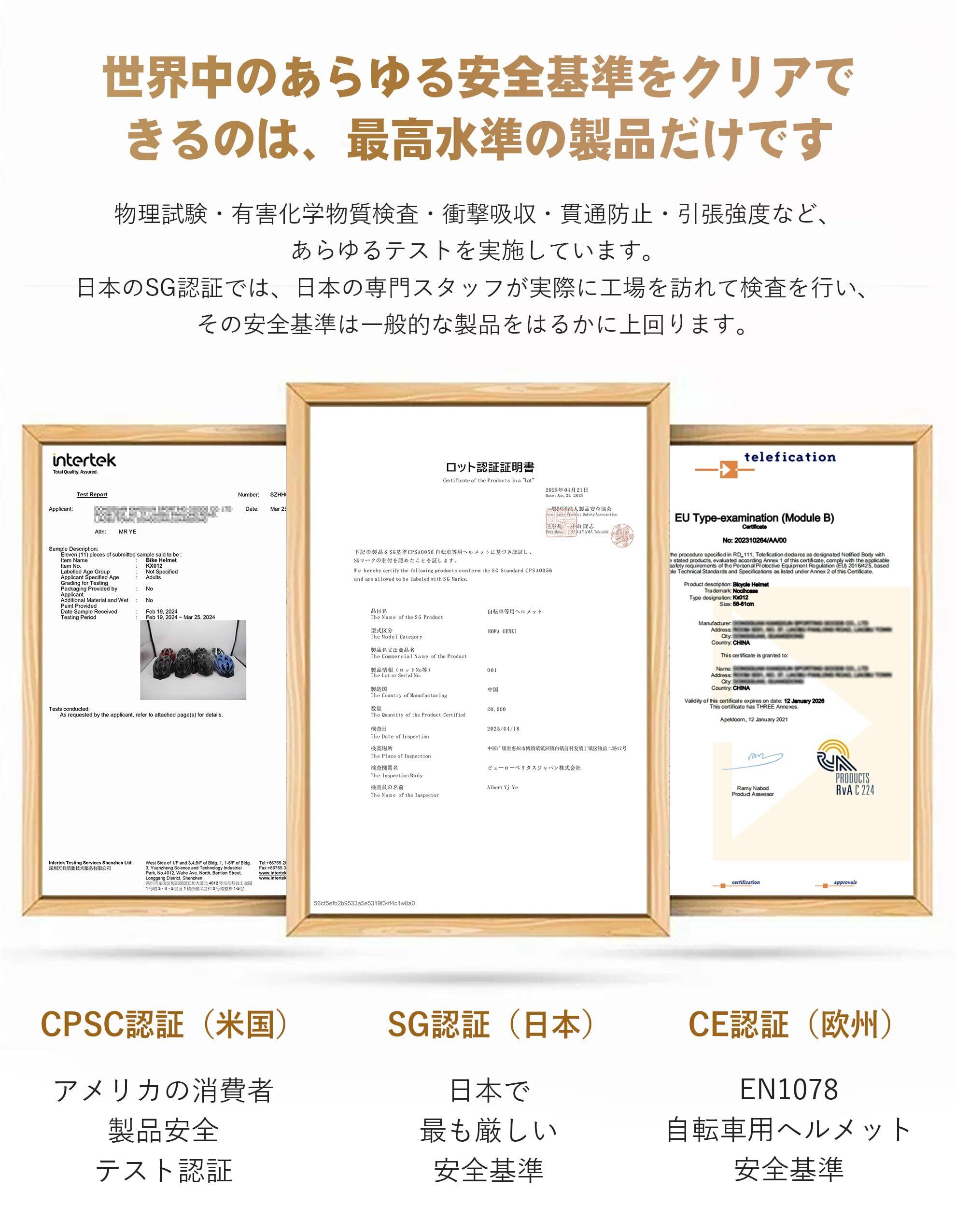 【高性能なSGマーク自転車 ヘルメット】この製品は安全協会に認証されたSGマーク適合商品です。「SGマーク規格」とは製品協会が認証した製品に対し、 安全基準・製品認証・事故賠償が一体となった保証をする世界的にも類を見ない規格です。政府はSGマークの付いた製品の着用を奨励しています。頭部をしっかりと守れるヘルメットをお選びください。