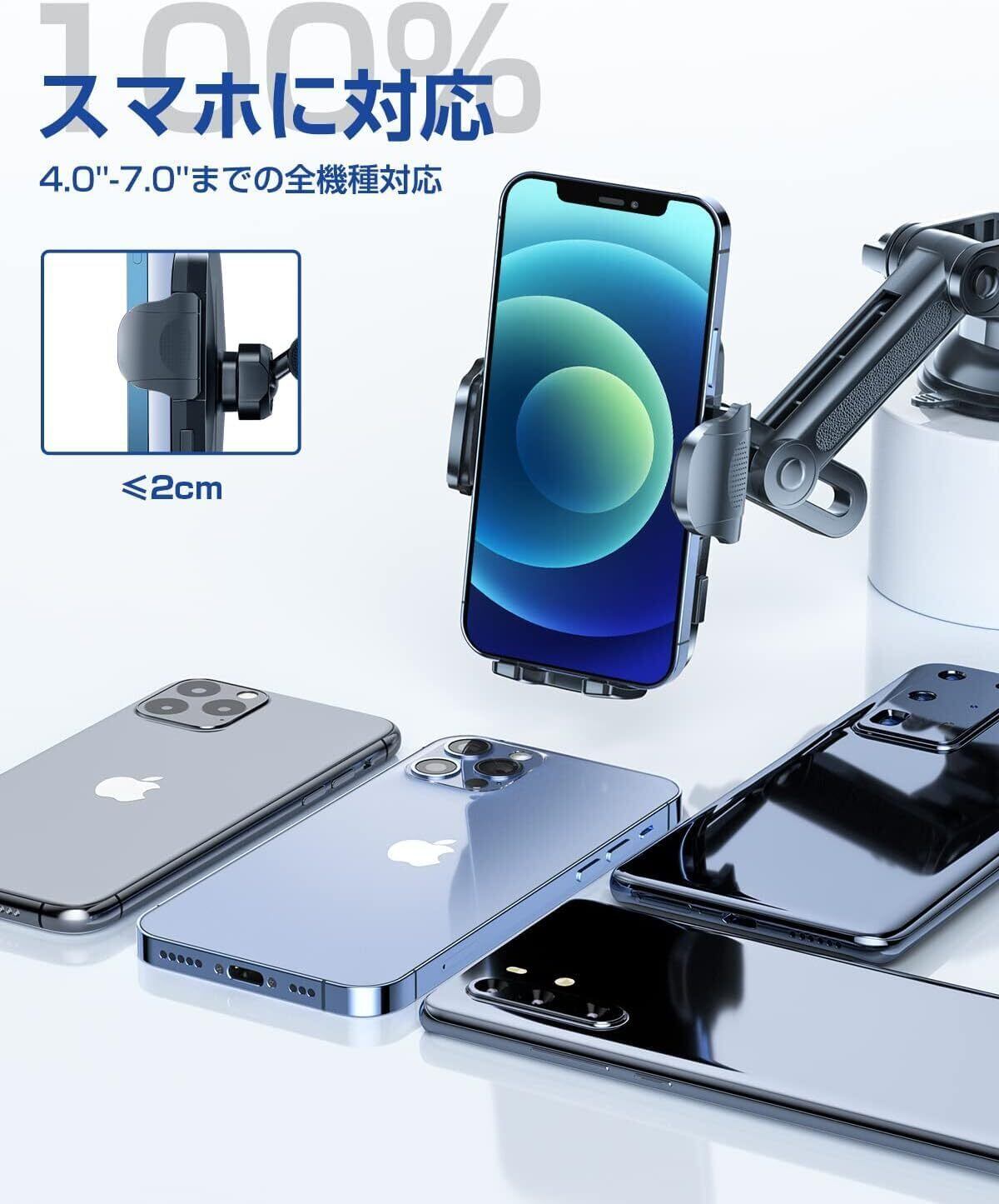 【幅広い互換性】携帯ホルダー 車は横幅6.5㎝-10.2㎝の端末に対応、iPhoneをはじめ、Galaxy、Huawei 、Google Xperiaなどの大型スマートフォンにも使用可能!ご注意:車 スマホホルダーにipadは取り付けられません。スマホホルダーの各部品も厳格なテストを完了しました。耐久性も安全性も全然心配ありません