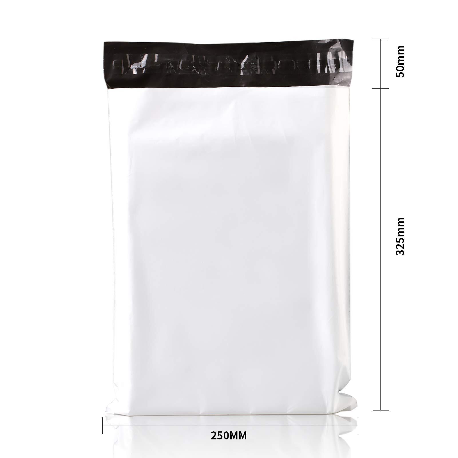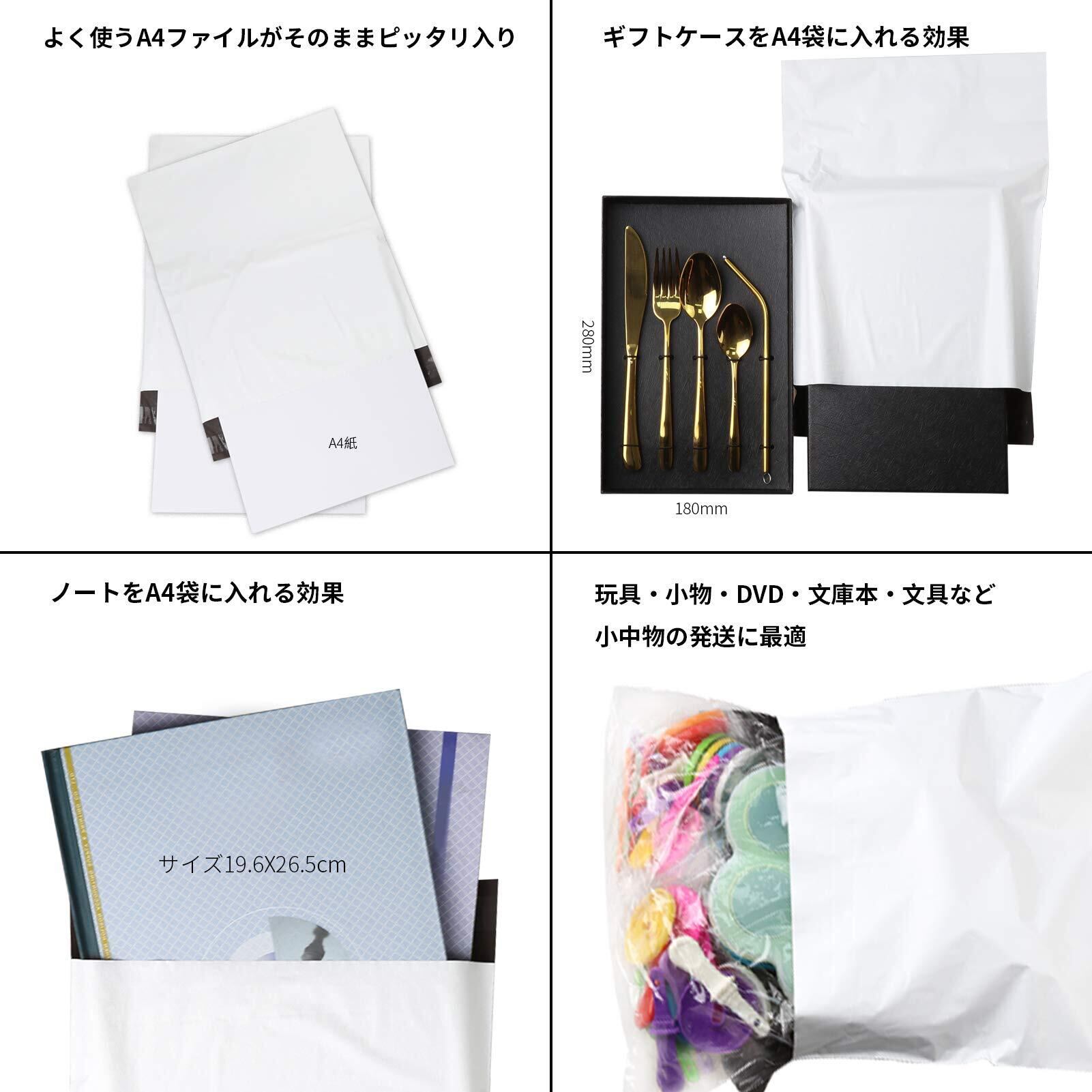 KAMMAK 宅配ビニール袋 A4サイズ 幅250mm×深さ325mm+フタ50mm(100枚入り) 白 薄手 軽量 防水 耐久 強粘着テープ付き 大ボリューム 梱包資材 梱包袋 A4書類 DVD文庫本文具など小中物入れ発送用品 クロネコDM便ネコポス ゆうパケット クリックポスト ポスパケット 様々な発送に対応メール便袋 (M)
