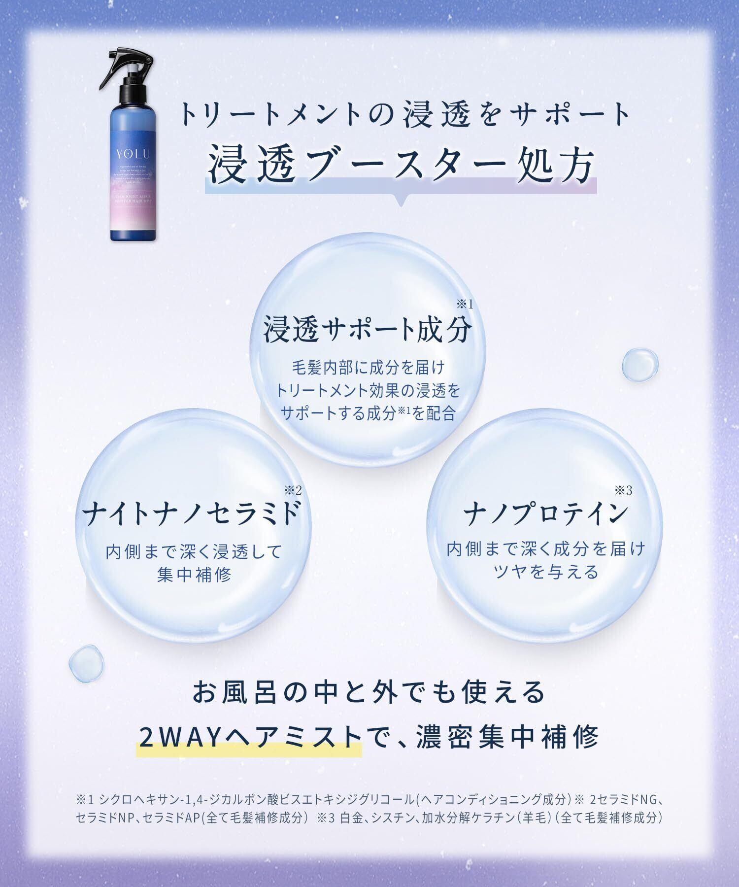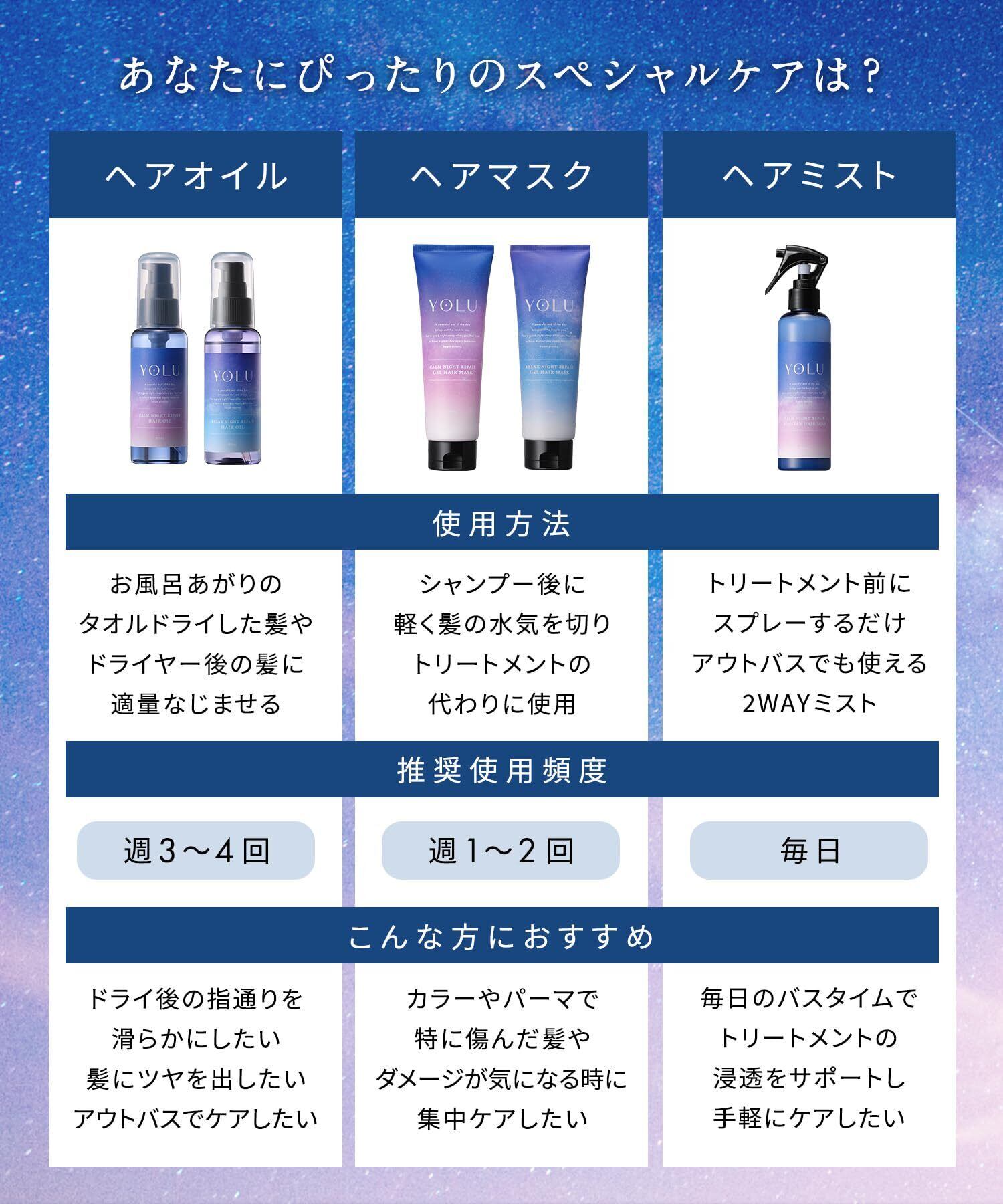 商品特長 YOLU独自の夜間美容でうるツヤ髪に導きます。