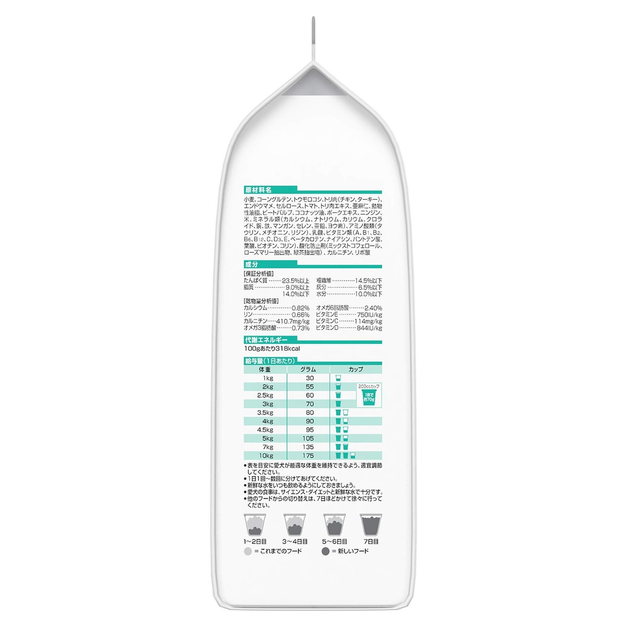 カロリー約14%*オフで確かな栄養を実現し、理想的な体重管理をサポート(*当社「アダルト 小型犬用 成犬用」ドライ製品との比較)