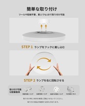 【ワンータッチ取付け】アダプターとライト本体の一体化設計のため、部品組み立ての必要がなく、シーリングライト全体を天井の引掛け装置に押し込んで、右回りに回転するだけで設置完了です。工具・配線も必要がなく、素人で1分間で取り付けます!
