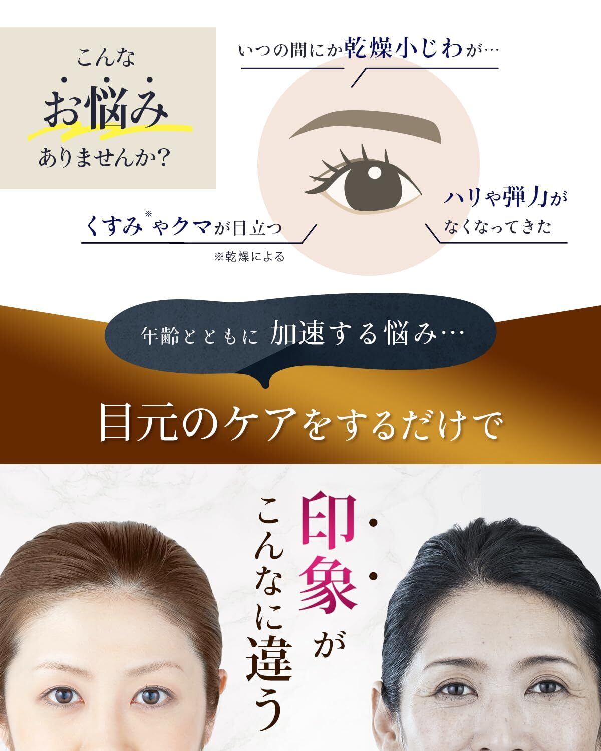 【目元のこんなお悩みありませんか?】乾燥による小じわ・くすみ・クマが目立つ…|目の下にハリや弾力がなくなってきた…