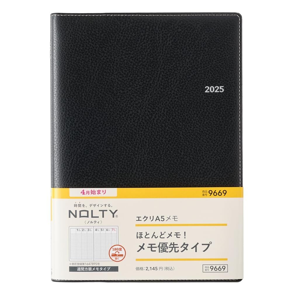 能率 NOLTY 手帳 2025年 4月始まり A5 ウィークリー 週間方眼メモ エクリ メモ ブラック 9669