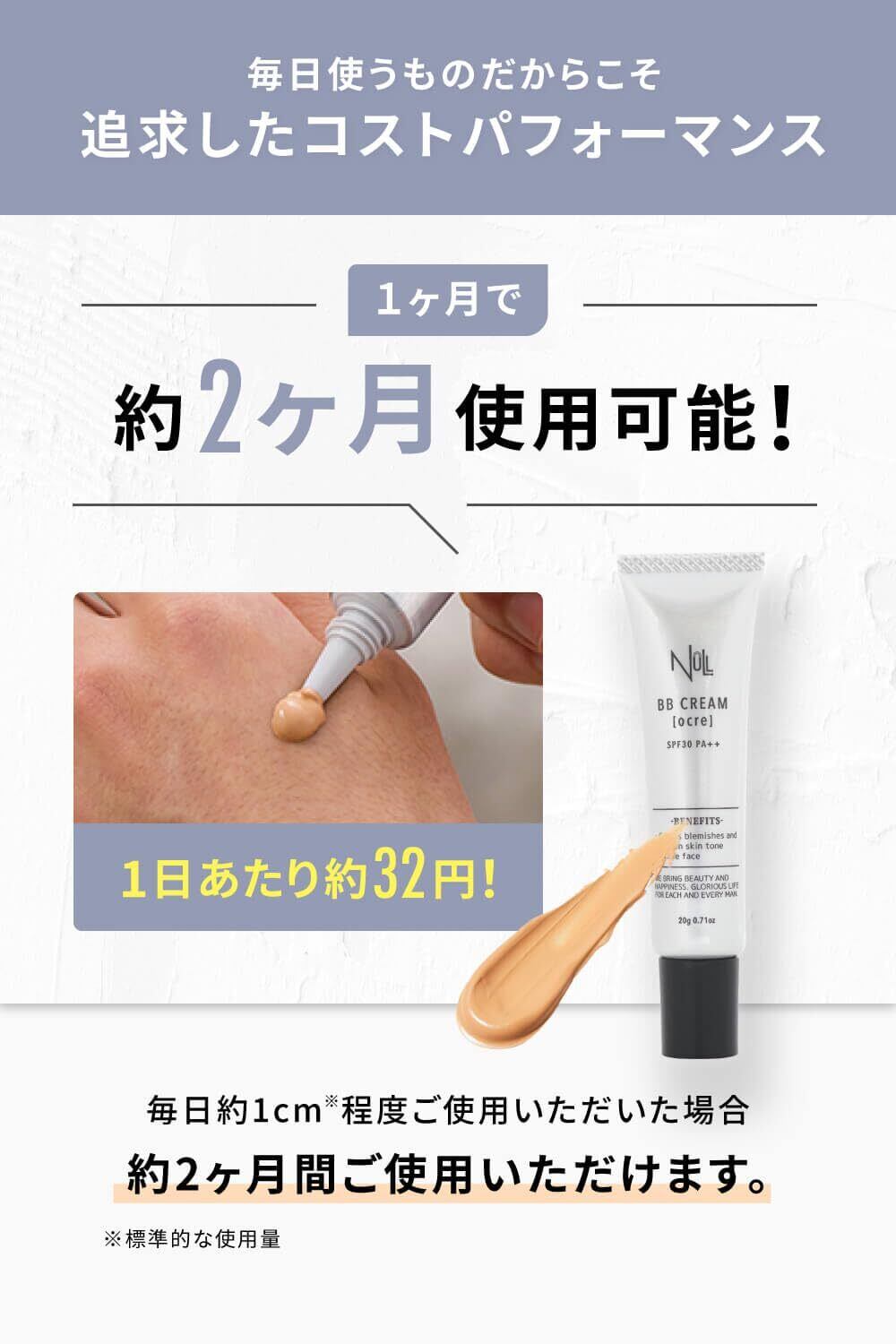 NULL BBクリーム 青ひげ ニキビ跡 に 日焼け止め SPF30 PA++ コンシーラー メンズ 20g オークル