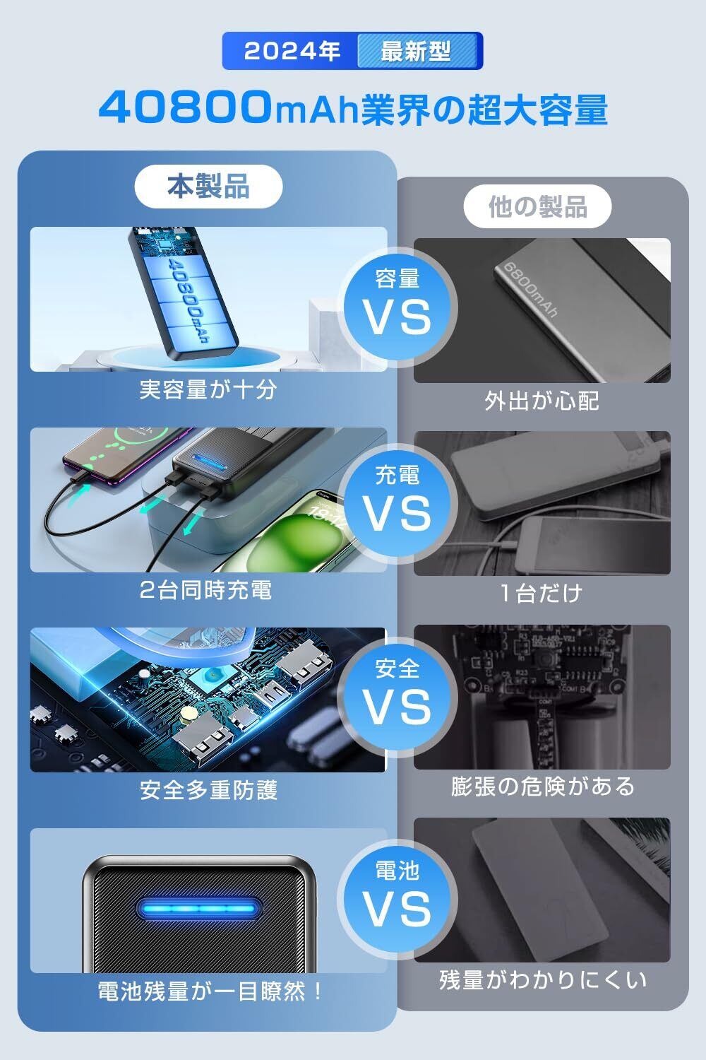 モバイルバッテリー 大容量 【2025モデル & 40800mAh大容量】 バッテリー 急速充電 スマホ 充電器 携帯充電器 2.4A出力 2WAY入力 モバイル・バッテリー 軽量 Type-C入力ポート power bank 残量表示ランプ 2USB出力ポート 2台同時充電可能 iPhone/Android/iPadに適合する PSE技術基準適合 旅行/出張/アウトドア/停電対策