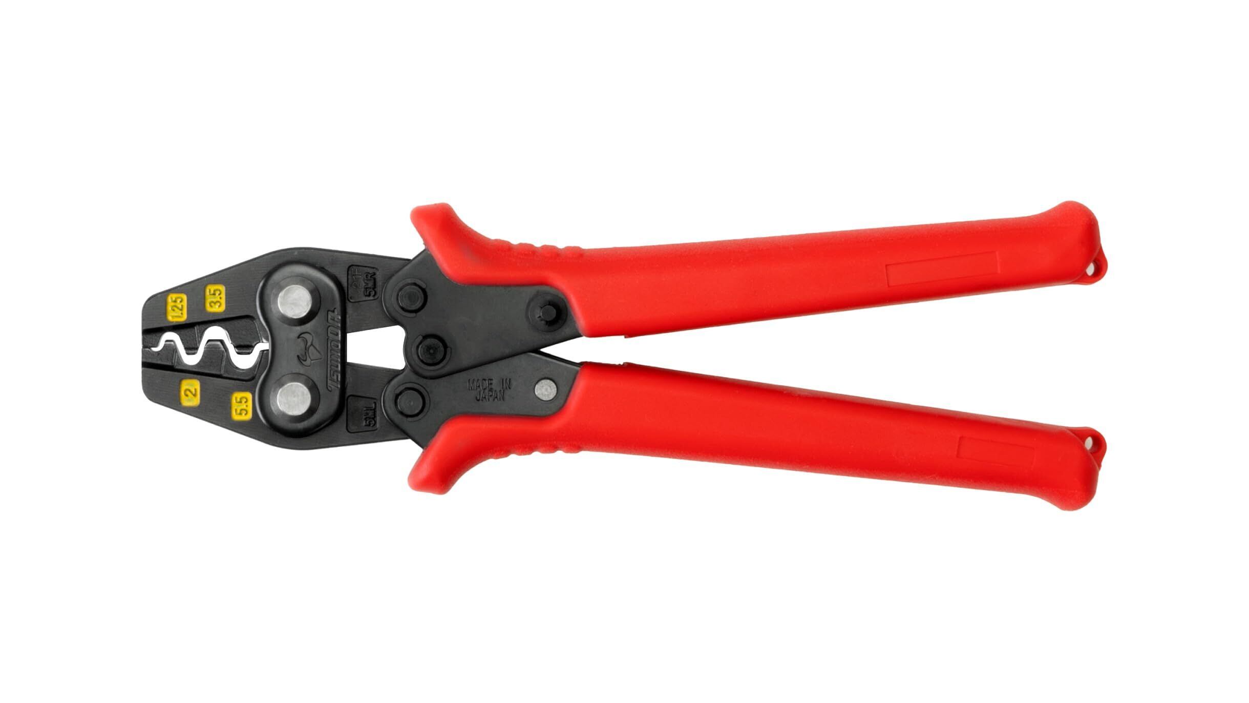 軽量・コンパクトタイプ、片手で5.5sq電線の圧着ができます。トグル機構採用で単位ストロークあたりの所要握力を軽減します。3.5サイズの圧着も可能です。
