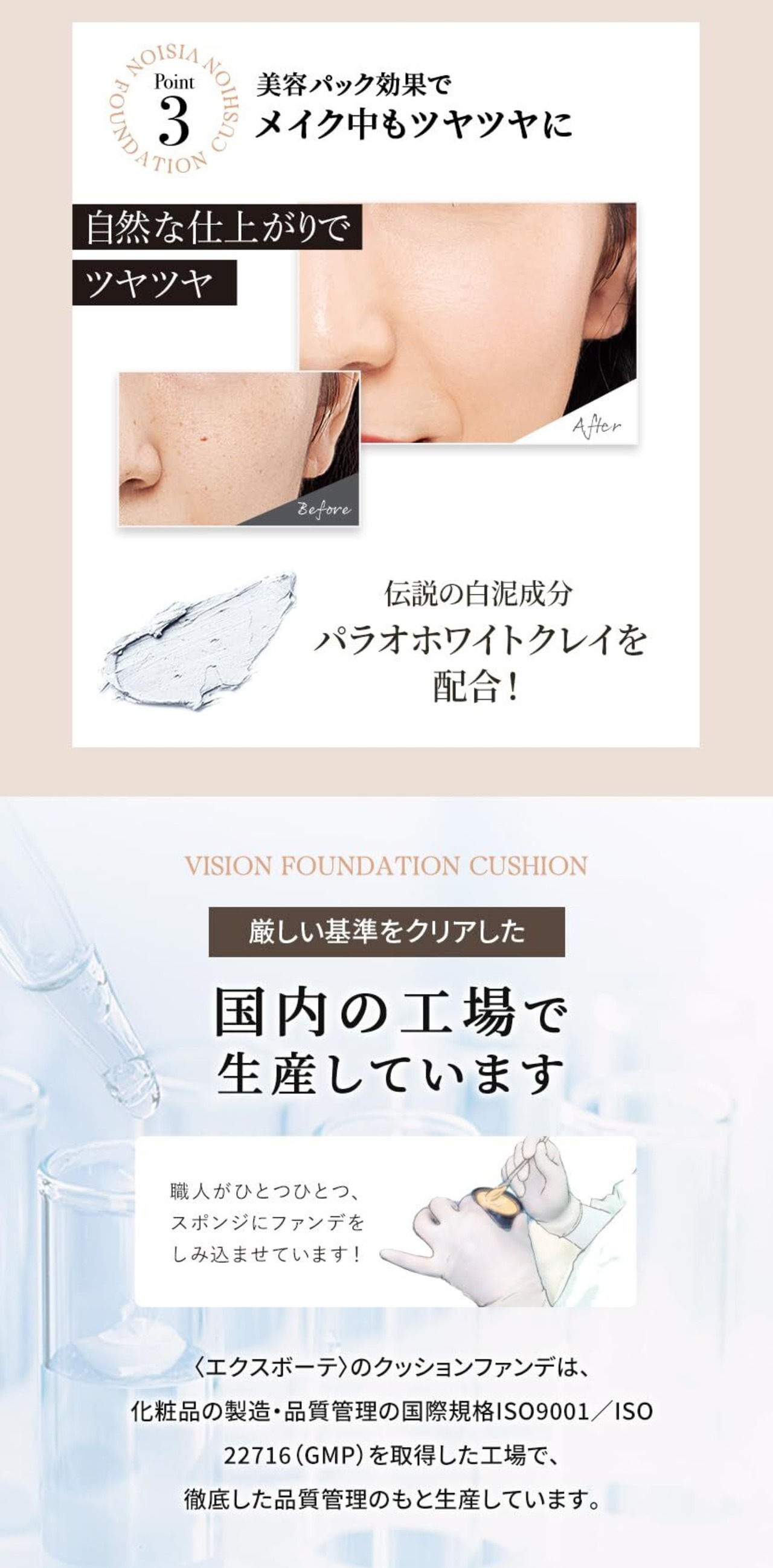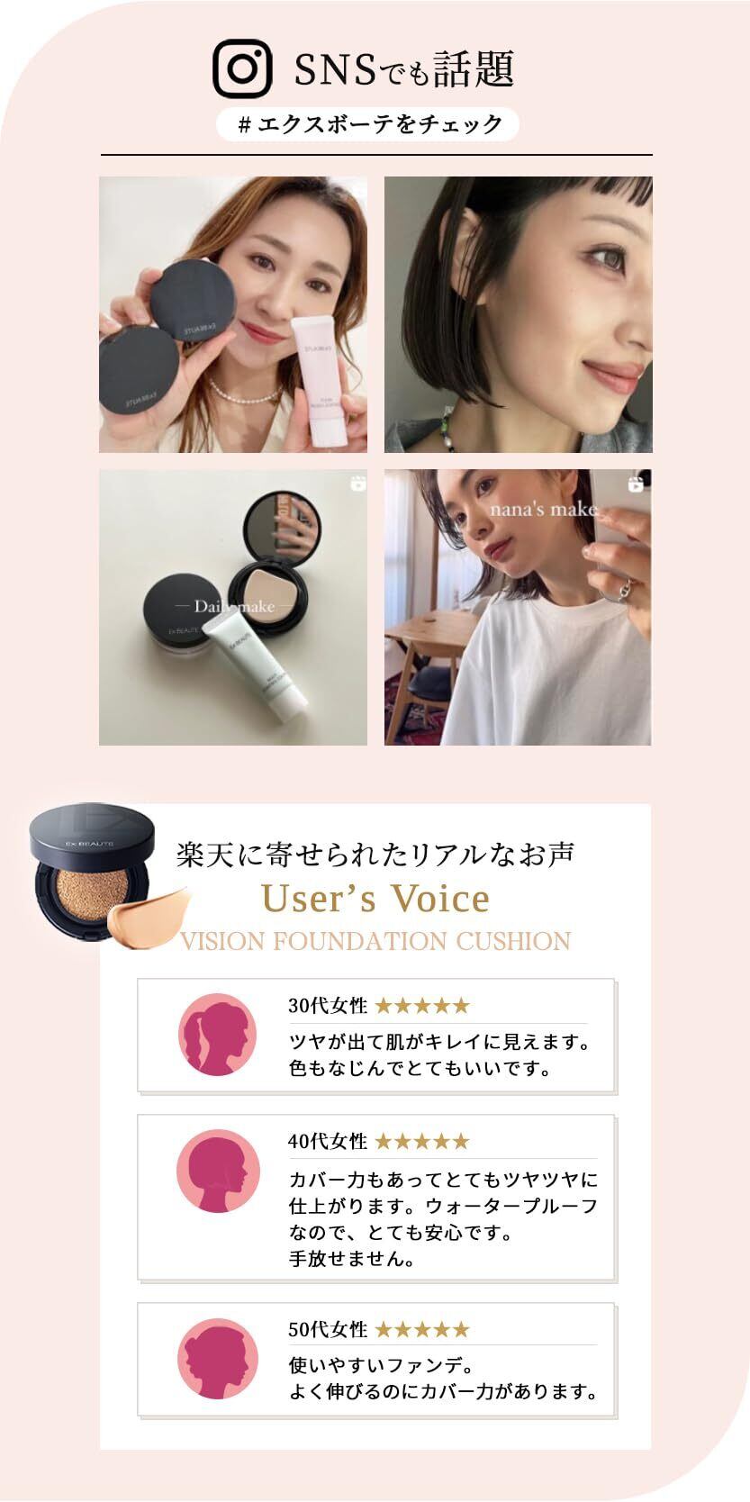 【2022最新】【ツヤ肌クッションファンデ】EX:BEAUTE エクスボーテ ビジョンファンデーション SPF50+/PA++++ 美容成分 つや肌 透明感 自然な高いカバー力 ウォータープルーフ クッションファンデ 日本製 (オークル01, レフィルのみ)