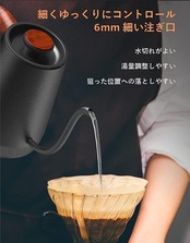 【90°垂直注ぐ&1L大容量】細長い注ぎ口(6mm)、水流のスピード、水量と方向を簡単にコントロール、美味しいコーヒーとお茶を淹れます。細口電気ポットは1Lの大容量で多めのコーヒーを作るニーズに満足できます。