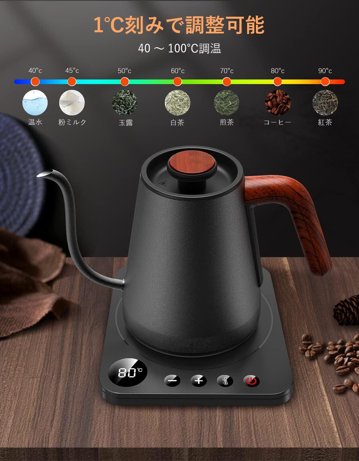 ハゴオギ (HAGOOGI) 電気ケトル コーヒー ケトル 1.0L 1200W 温度調節(1℃単位)/保温機能/空焚き防止 細口 ドリップ ポット (ブラック)