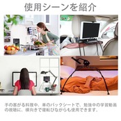 【使用シーンを紹介】手の塞がる料理中、車のバックシートで、勉強中の学習動画の視聴に、横向きで寝転びながらも使用できます。