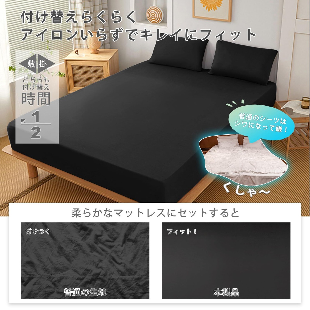 【丸洗い可能・2枚組·オールシーズン対応】シワになりにくく、取り外しや洗濯が簡単です。市販されているほとんどのマットレスに適しています。自宅の洗濯機で丸洗いでき、いつでも清潔に使用できます。また、室内干しでも乾きが早く、頻繁に洗濯される方にも適しているため、洗い替えに便利な2枚組セット。保湿性が高かく静電気が起きづらいことで、どんな季節でも快適な寝心地になります。