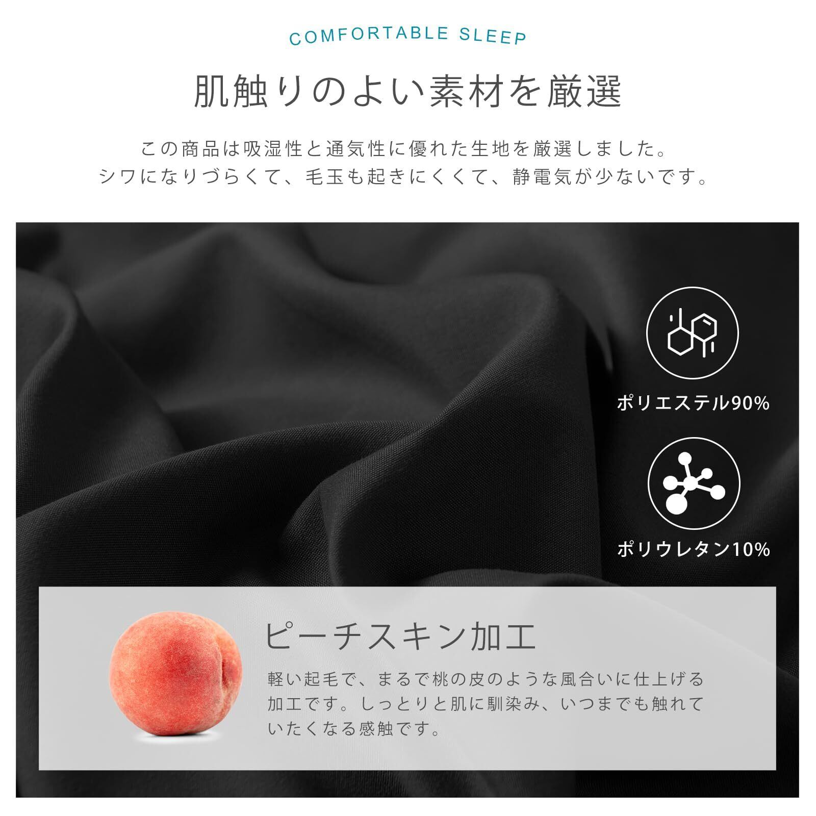 【吸水速乾·防ダニ·肌に優しい・高密度素材】素材はポリエステル90%。直接お肌に触れるものなので、この商品は吸湿性と発熱性に優れたポリエステル生地を厳選しました。ポリエステルはシワになりづらくて、乾きやすい軽量素材です。吸水速乾タイプなので洗濯機で丸洗い後、比較的短時間で乾きます。ダニの栄養分となるケア、アカ、湿気などをマットレスに溜まらないのため、安全のダニを抑制します。柔軟なピッチスキンのポリエステルに抗菌防臭加工を施しており、柔軟でお肌の敏感な方やお子様にも毎日にご安心に使用できます。さらに、高密度生地で丁寧に織り上げることにより、耐久性が高く、長くご使用いただけます。