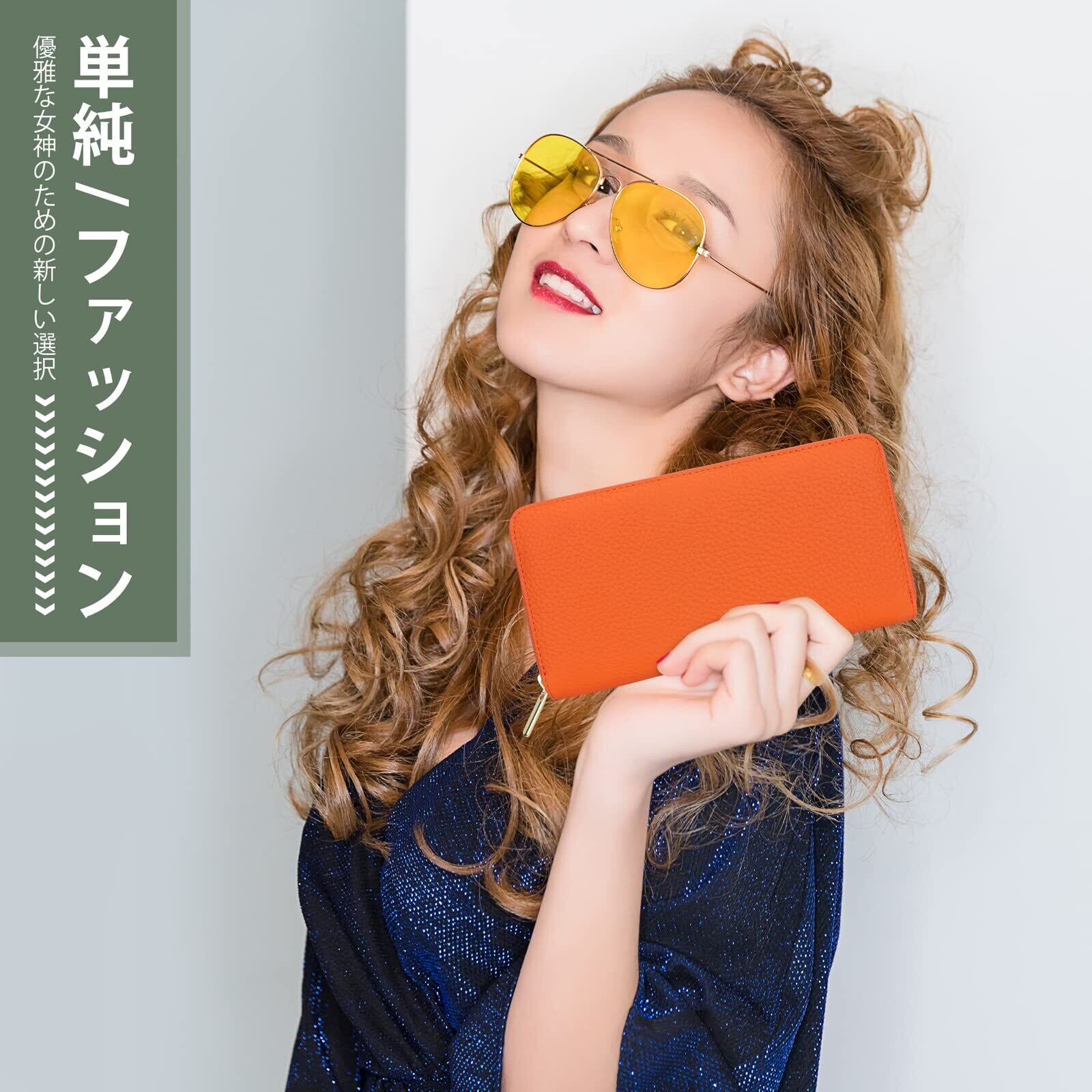 [DCLKO] 2025年 長財布 レディース 財布 本革 牛革 多機能財布 YKKファスナー カード22枚 長 財布 大容量 本革 長サイフ スキミング防止 (オレンジ)