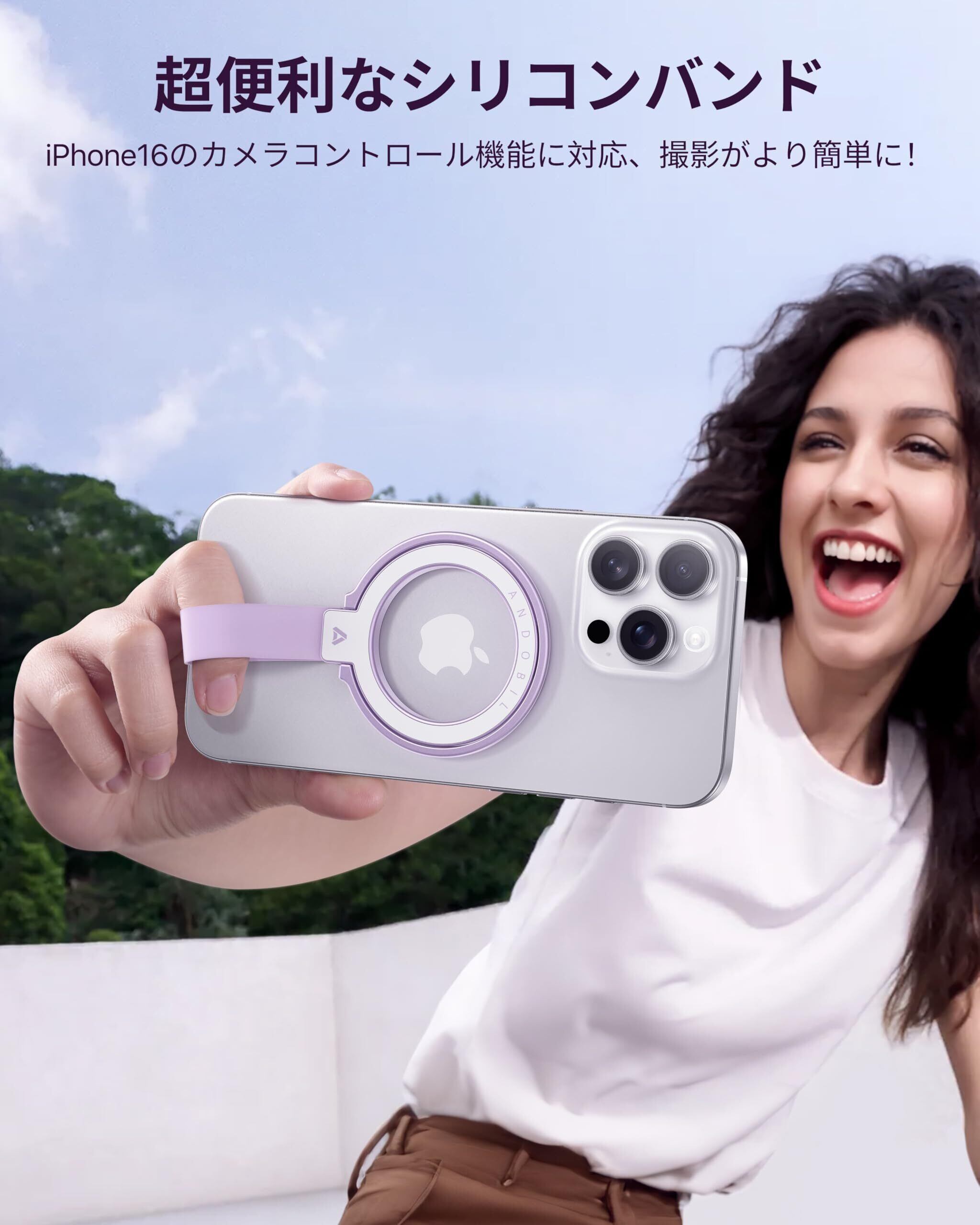 【超快適・超便利・耐久性抜群・汚れ防止のシリコンバンド】もしお客様のスマホがiPhone 16シリーズであれば、このスマホリングは最適な選択です。このスマホリングのシリコンバンドはiPhone 16のカメラコントロール機能に対応しています。iPhone 16のカメラコントロールボタンはスマホ下部にあるため、片手操作が少し難しいですが、シリコンバンドは指をしっかりフィットし、ボタンを楽に操作でき、素晴らしい写真や動画を撮ることができます。さらに、他の機種をご利用の場合でも、このスマホリングは同様に最適な選択です手忙しい時でも、指をシリコンバンドに通すだけでスマホを簡単に持ち運べます。そして、シリコンバンドは指に優しく、長時間使用しても指が痛くなることはありません。また、シリコンバンドは高弾性技術が採用し、弾力性と柔軟性が向上しています。そのため、引っ張ったり曲げたりしても壊れにくく、耐久性は抜群です。最後に、シリコンバンドは最新の抗菌素材で簡単に清潔に保て、常に新品のような輝きます。「MagStand Pro」は、あなたが最も信頼できる生活のパートナーです。