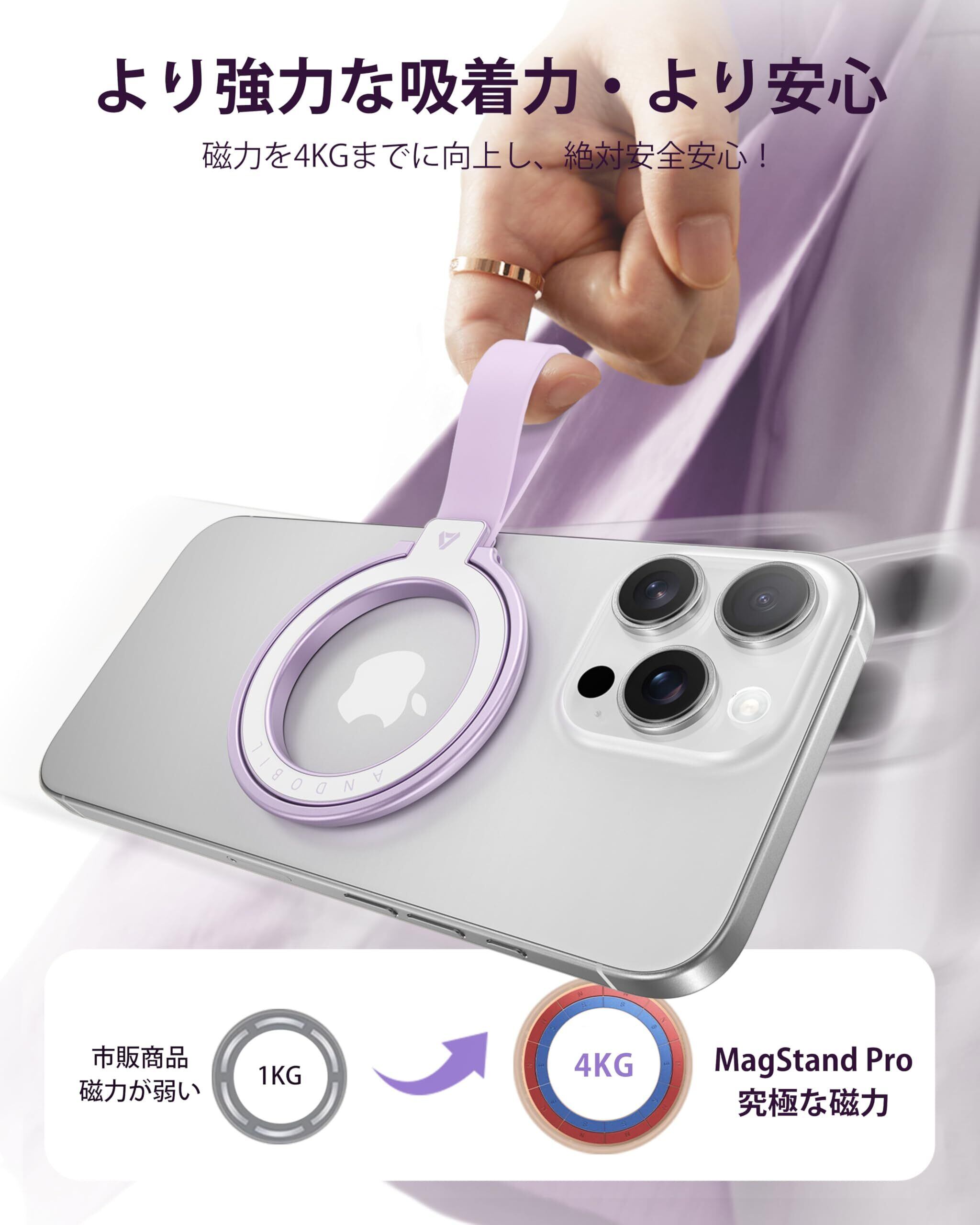 【在庫処分】【2025最新型・MagStand Pro】 Andobil スマホリング Magsafe マグセーフ リング 【スタンド機能特化& 超强磁力 】 バンカーリング 両面 マグネット スマホ リング 360度回転 角度調整可 簡単着脱 マグネットリング 薄型 高級合金素材 携帯リング 磁石 iPhone 16 15 14 13 Pro Max Androidに対応 パープル | ニコニコSHOP