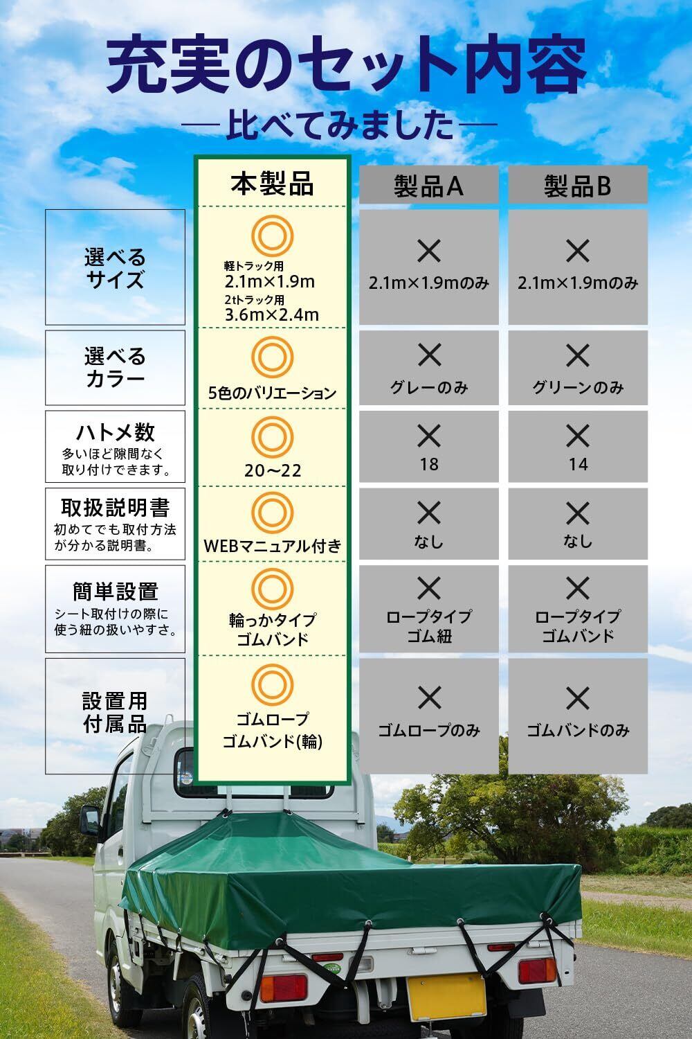 Webirth 荷台シート 輪っかタイプのゴムバンドと荷物固定用ロープつき 軽トラック用と2tトラック用から選べる (レッド2.1m×1.9m 軽トラック用)
