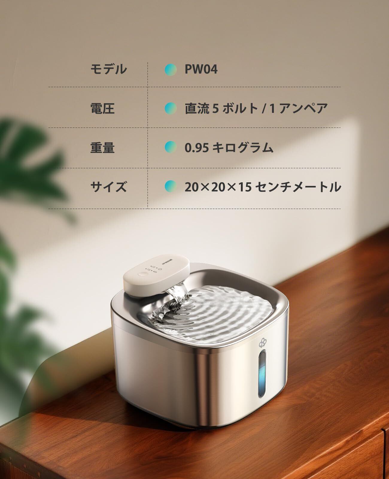 【特価商品】Oneisall 猫 水飲み器 5000mAh充電式 コードレス 3.5L大容量 センサー検知機能付き 静音ポンプ 自動給水器 活性炭フィルター3枚付 ステンレス製 3種類の水流モード 内蔵電池(60日稼働)FW04(シルバー) | ニコニコSHOP