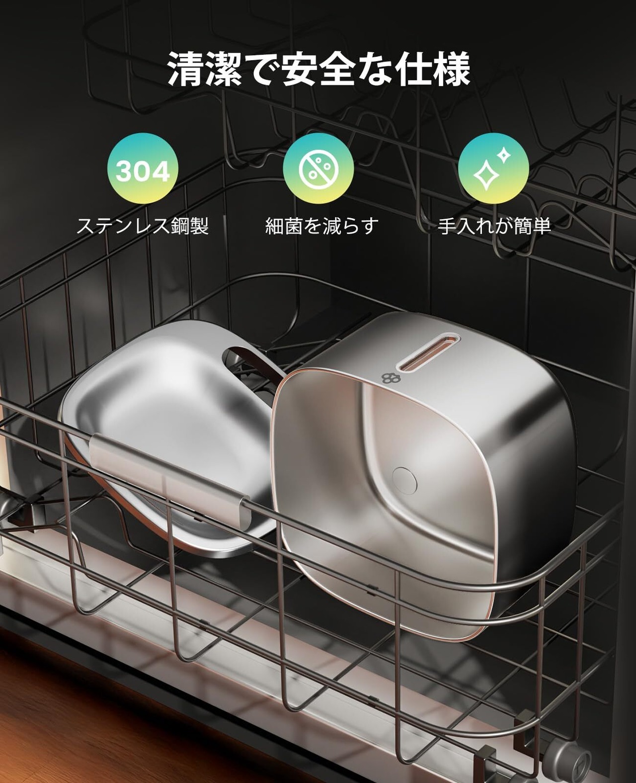 【3.5Lの大容量×清掃のしやすさを追求した設計】本猫 水飲み器は食品級 SUS304 ステンレスを採用しており、表面が滑らかで多孔質ではないため、異物や細菌の付着を最大限に減少させ、洗浄しやすくきれいになります。同時に優れた耐熱性と耐久性を備えており、長期間使用しても良好な品質を維持することができます。 3.5Lの大容量を備えたこの自動猫用給水器は、多頭飼育時でも十分な水量を提供します。水位確認窓により水量を簡単にチェックでき、非常に多頭飼いをしている猫の飼い主様に適しています。