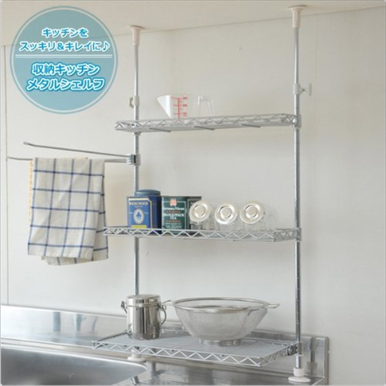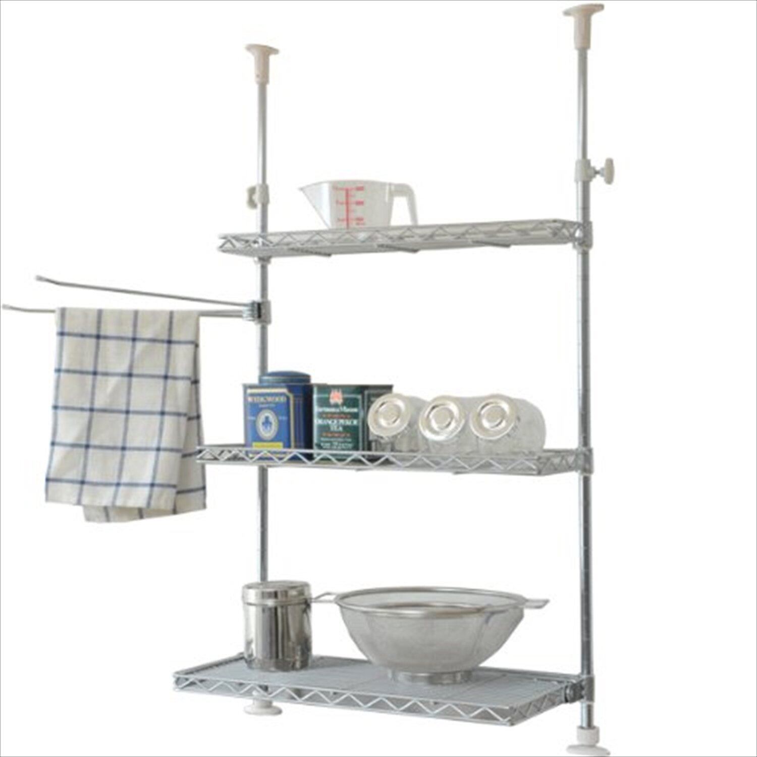 ●組立品です●棚奥行サイズ (上)10 (中)15 (下)19cm●最下段の棚は折りたたみ可能●布巾が掛けれるハンガーバー付●上棚耐荷重:2kg●中棚耐荷重:3kg●下棚耐荷重:4kg●タオルバー耐荷重:300g●支柱:直径12.7mm