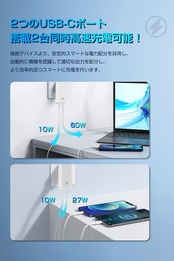 【2つのUSB-Cポート搭載】 USB-C×2ポート搭載でノートPCとスマホ同時に充電ニーズを完璧に満足できるPD急速充電器。どのポートに接続しても、デバイスごとに最適な電力を供給します。テクノロジーより、接続されたデバイスのを検知し、35W+35W、45W+20Wといった最適なパワーを自動的に配分します。、ご自宅のリビング周りや、ソファー、ベッド周りなどの狭く挿しづらい場所等での使用におすすめ。どこでも持ち運びができ、カフェや新幹線、飛行機、出張や旅行にも最適です。