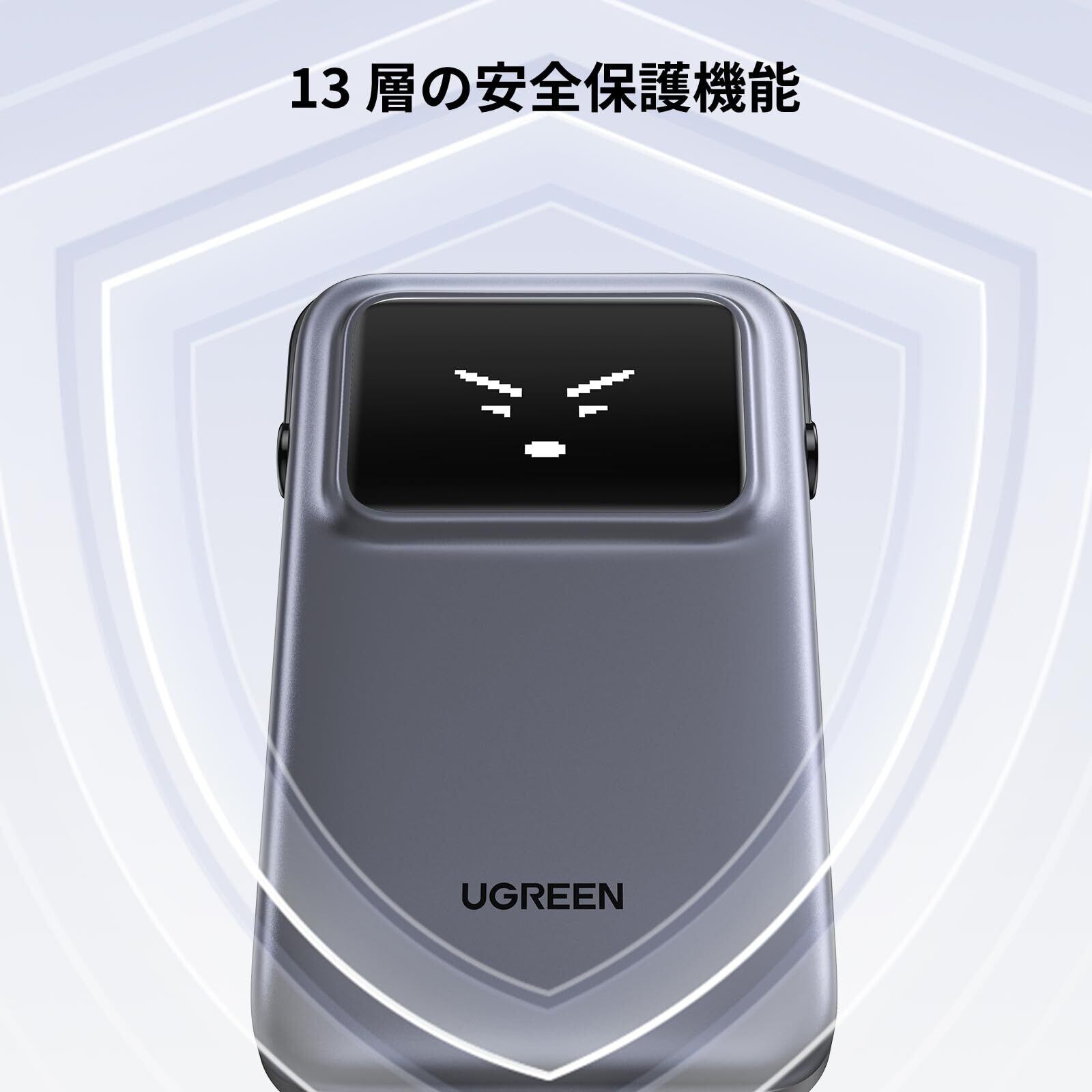 UGREEN Uno モバイルバッテリー (Built-In USB-Cケーブル 10000mAh 30W) PD急速充電対応 3ポート TFTスクリーン ロボット形デザイン パススルー機能 低電流モード搭載 USB-Cケーブル一体型 PSE技術基準適合 iPhone iPad Android Galaxy スマホ タブレット iWatch airpods pro その他 PB511 メタリック