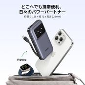 【 USB-Cケーブル一体型・ケーブルを別途用意必要なし 】USB-Cケーブル一体型モバイルバッテリーで、外出先でもお使いの機器をいつでも充電可能になり、ケーブルを別途持って行かなくてよいのはもちろん、ケーブルを忘れる心配がないのもメリット。荷物を減らしたい方におすすめできるモバイルバッテリーです。(※ 当製品はiphoneシリーズと互換性があり、他のブランドの携帯電話は互換性がないかもしれないことにご注意ください。ご購入前に、ご自身のスマホの仕様にご事前に確認ください。)