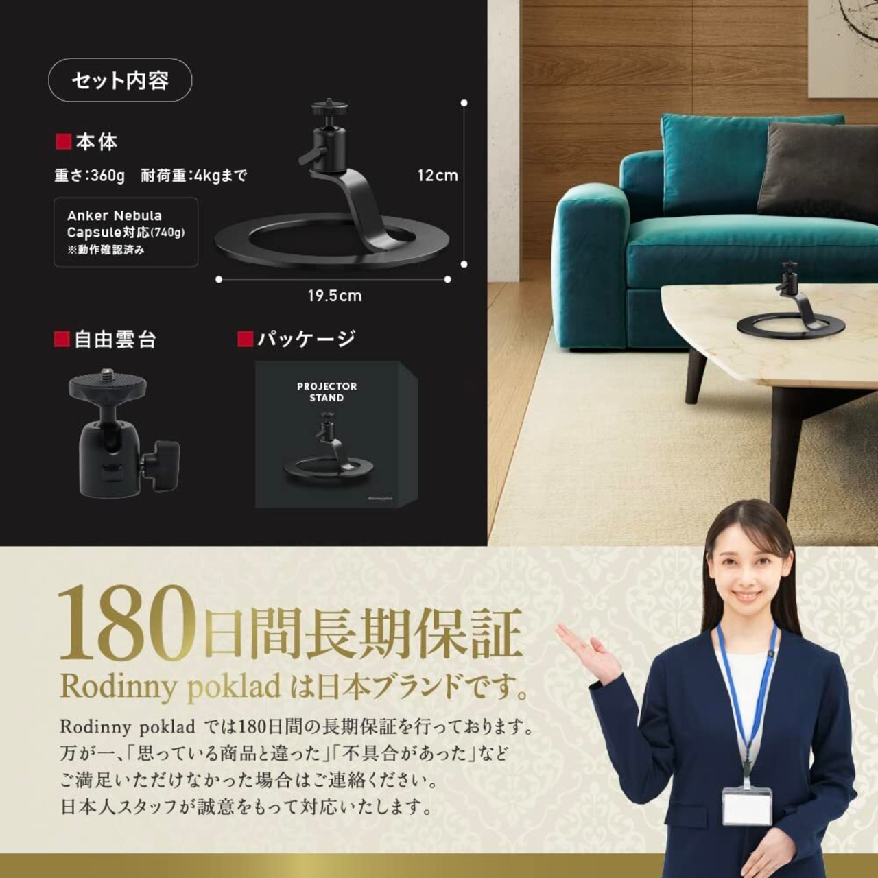 【耐荷重量4kg】アルミ合金製360gの軽量プロジェクタースタンド。自由雲台でお好みの角度に調整できます。180日の長期保証あり。
