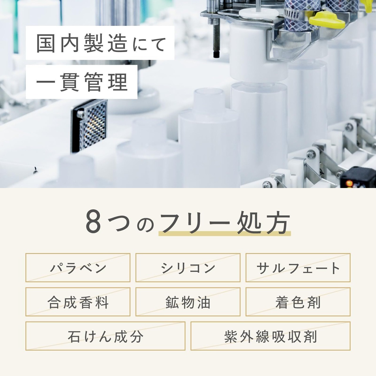 素材タイプフリー アルコールフリー, パラベンフリー, オキシベンゾンフリー, 界面活性剤フリー, ミネラルオイルフリー, 染料フリー