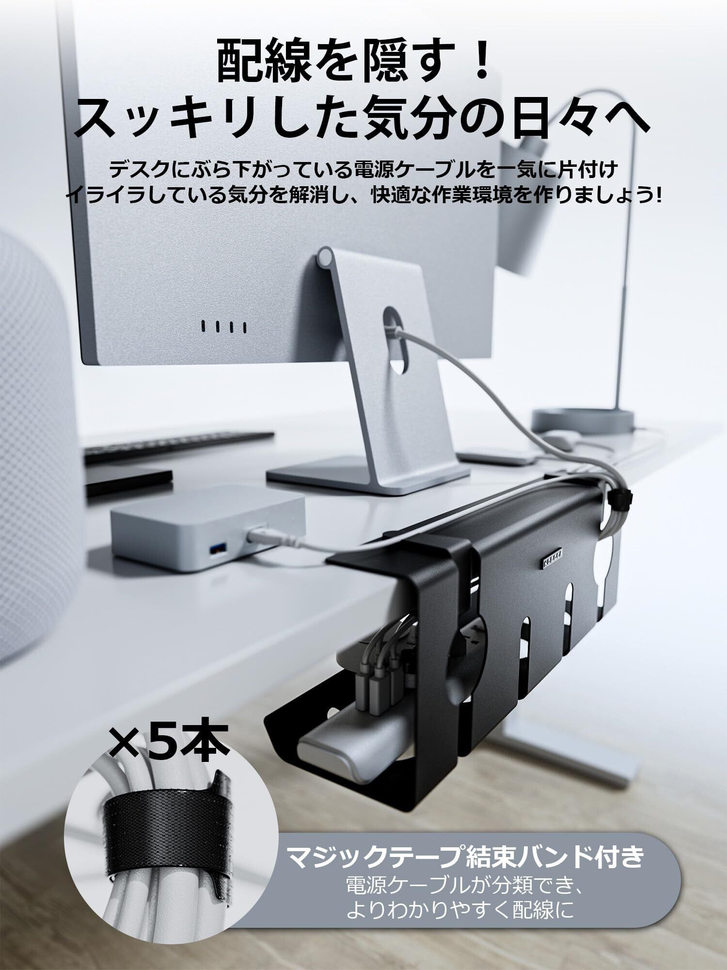 NODOCA ケーブルトレー 配線整理 ケーブル収納 配線隠し デスク配線トレー ケーブルトレー デスク下 コンセント収納 ケーブルラック コード隠し ケーブル隠し 穴あけ不要 コード整理 コード収納 長さ430mm マジックバンド5本付き