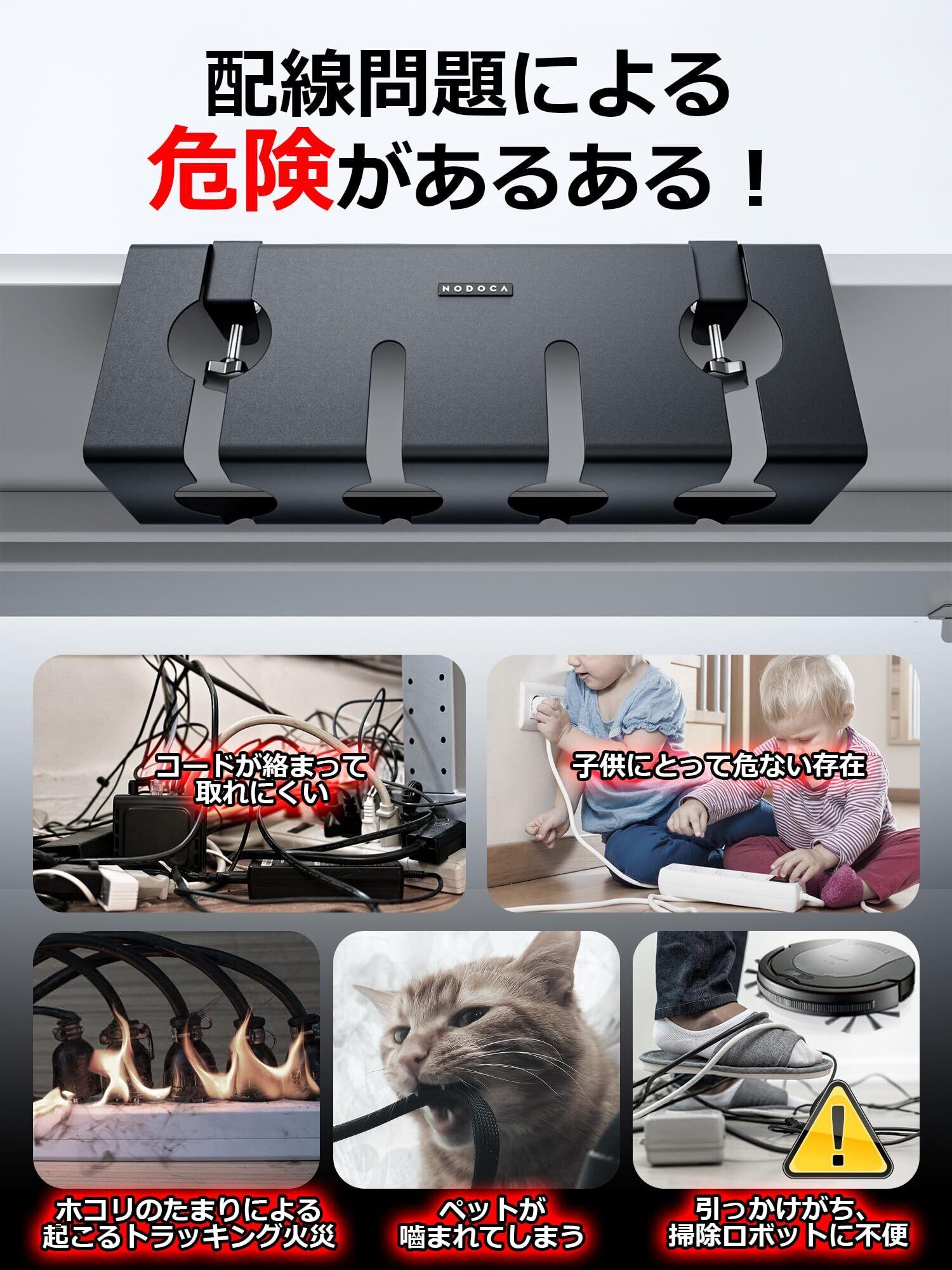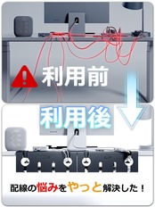 デスク周りをスッキリ整頓!電源コードやUSBケーブルをしっかり固定、配線のごちゃつきを解消します。簡単な取り付け:机の下穴あけ不要なデザイン,デスクの天板を挟むことで底部のハンドルを回して簡単に設置できます。穴あけや粘着テープ不要で跡も残りません。