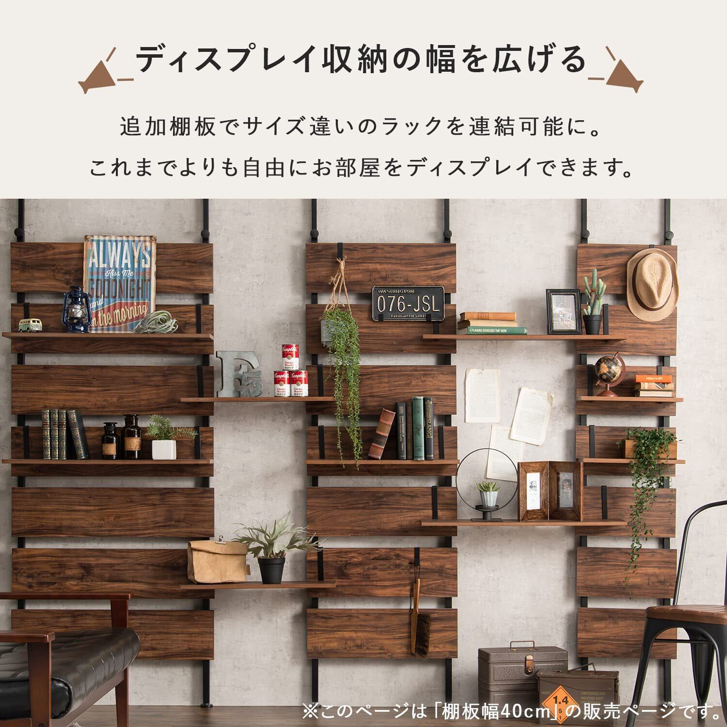 【特価セール】萩原 つっぱり ラック 追加棚 オプション ウォールラック 木目調 2枚セット 幅40 奥行17.5 高さ15 モダン シンプル ブラウン×ブラック KTR-3142-T40BB | ニコニコSHOP