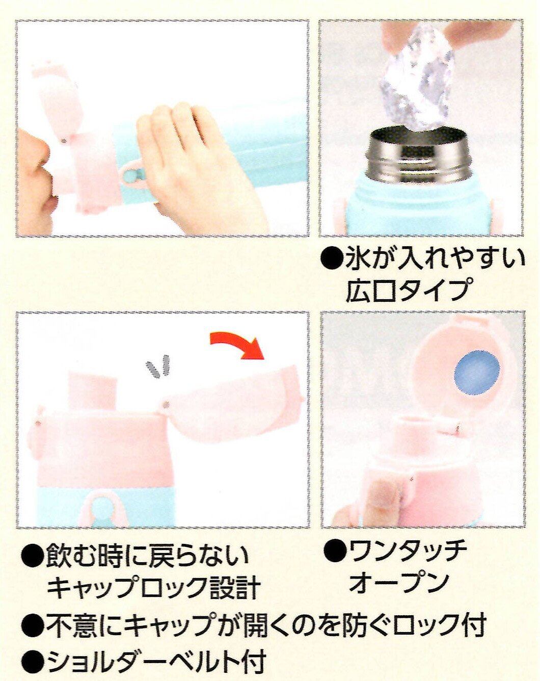 直飲みタイプのキャップユニットで一気に飲める