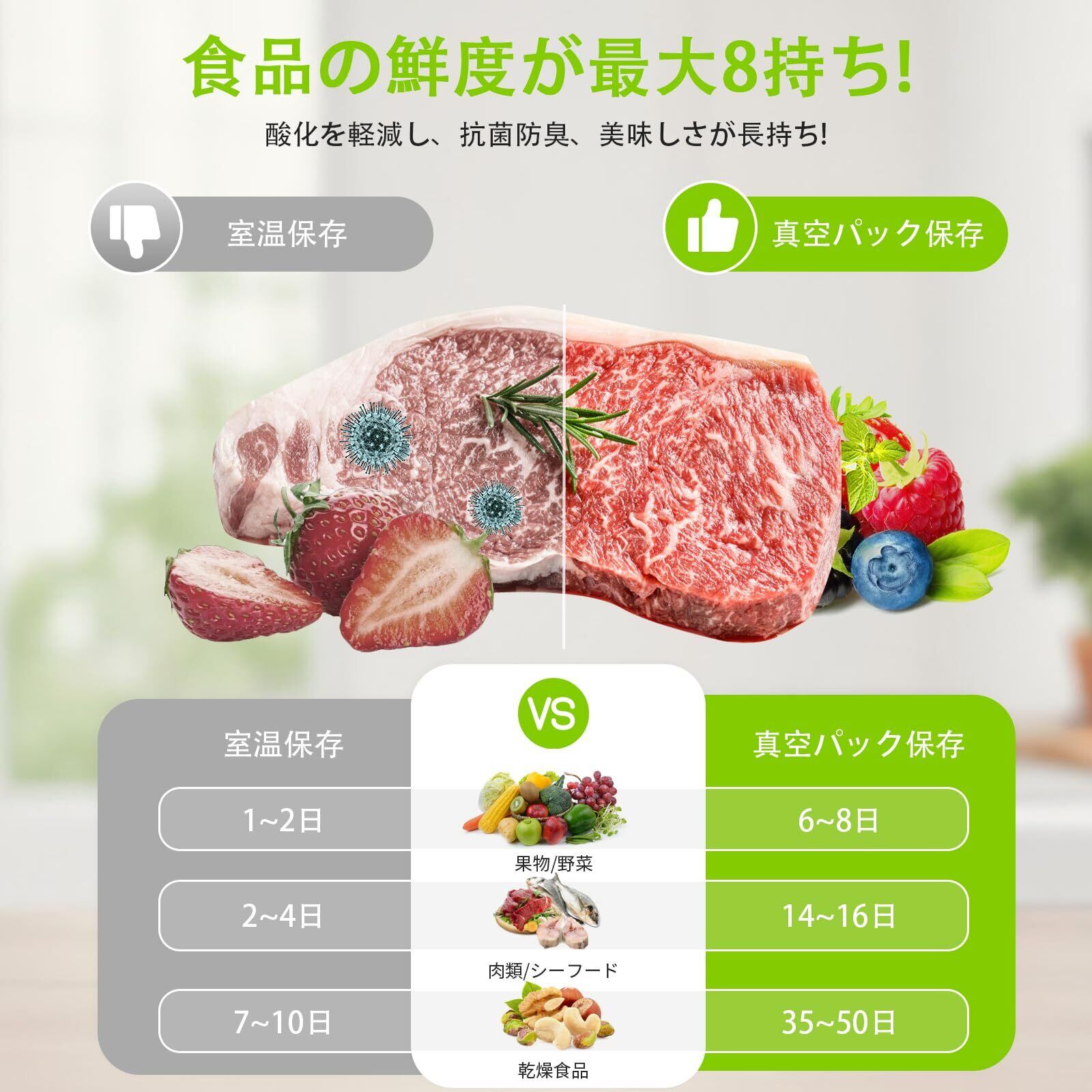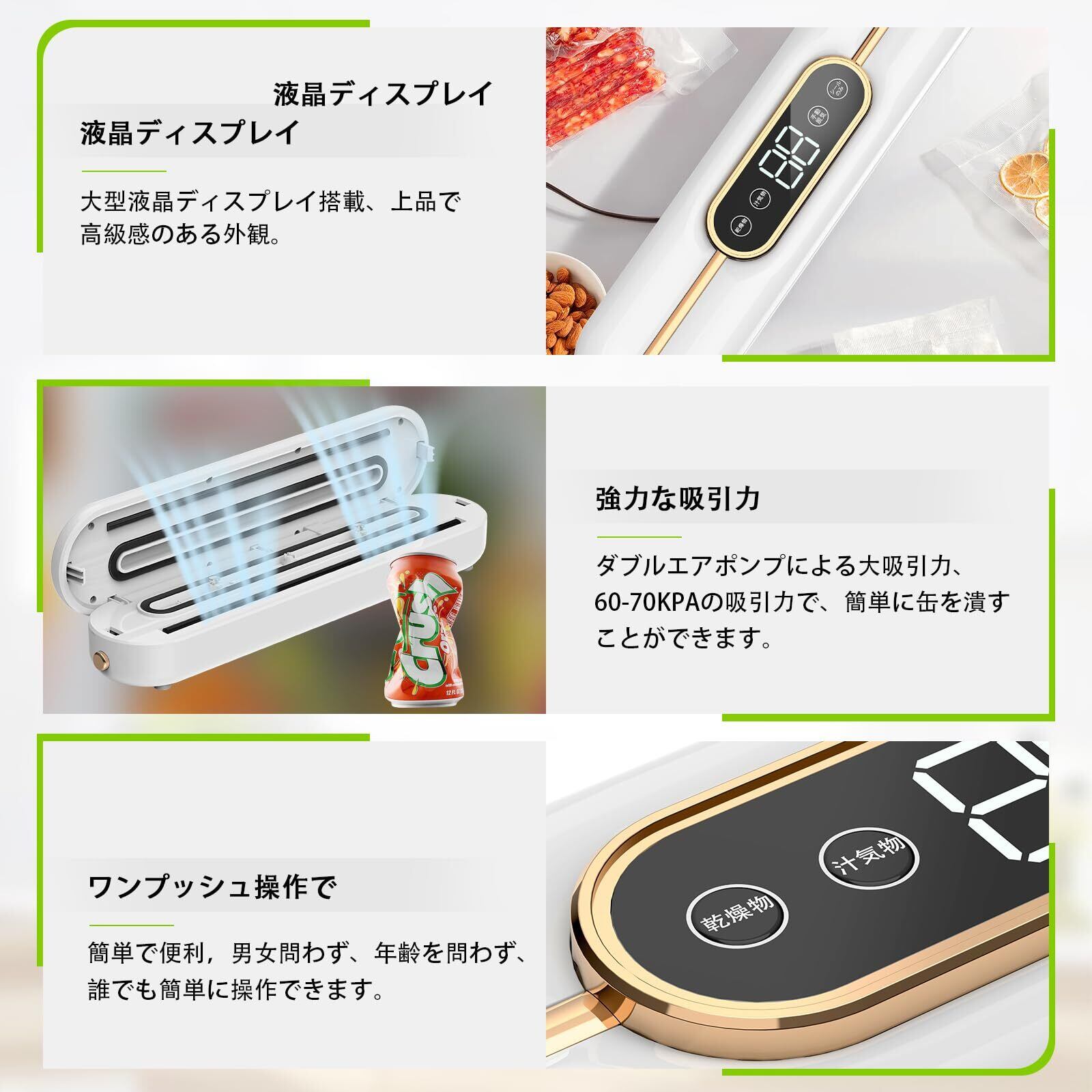 【真空力60Kpa・家庭用に最適な強力吸引】ダブルエアポンプによる最大60〜70Kpaの強力吸引で、缶が潰れるほどの真空度を実現。日常の食品保存に欠かせない家庭用キッチン家電として、肉・野菜・ナッツなどの鮮度を長期間キープ。酸化・湿気・細菌の繁殖を効果的に防ぎ、食材の栄養価と味わいを守ります。