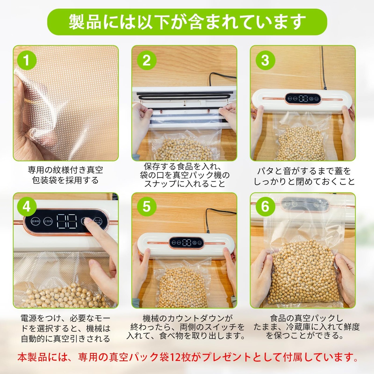 【真空袋15枚付属ですぐ使える】本製品には真空パック機×1、日本語取扱説明書×1、電源コード×1、真空パック袋×15が付属しており、開封後すぐにご使用いただけます。さらにREENEWは2年間の無条件返品・交換保証をご提供。安心して長くお使いいただける、信頼の家庭用真空パック機です。