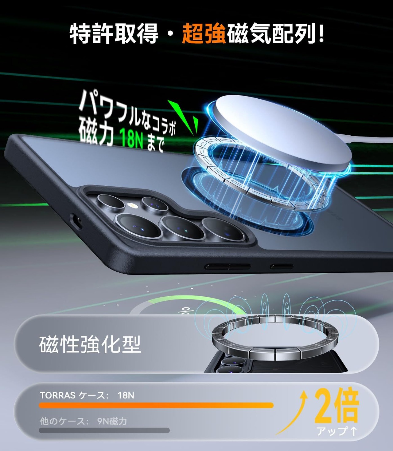 【信頼のTORRAS・進化を続ける】TORRAS Guardian-Mag は、ケース市場でTORRASデータ認定7年連続販売首位(2017-2023)、業界のリーダーとして、革新的な磁石技術と米軍規格の耐衝撃保護特許を組み合わせた磁吸ケースで、多くのお客様から信頼を得ています。Galaxyシリーズの進化に伴い、私たちも革新を重ね、さらに製品機能を強化している。Magsafe対応ケースを探しているなら、信頼のTORRASを選んでください。変わらない高級品質と、進化し続ける体験を届ける。※品質保証付き:TORRASは価格以上の品質保証をお約束し、通常の保証期間は180日間ですが、保証登録をすることで365日間に延長可能です。万が一問題が発生した場合は、注文ページからお問い合わせいただければ、一年以内に品質保証を受けられます。