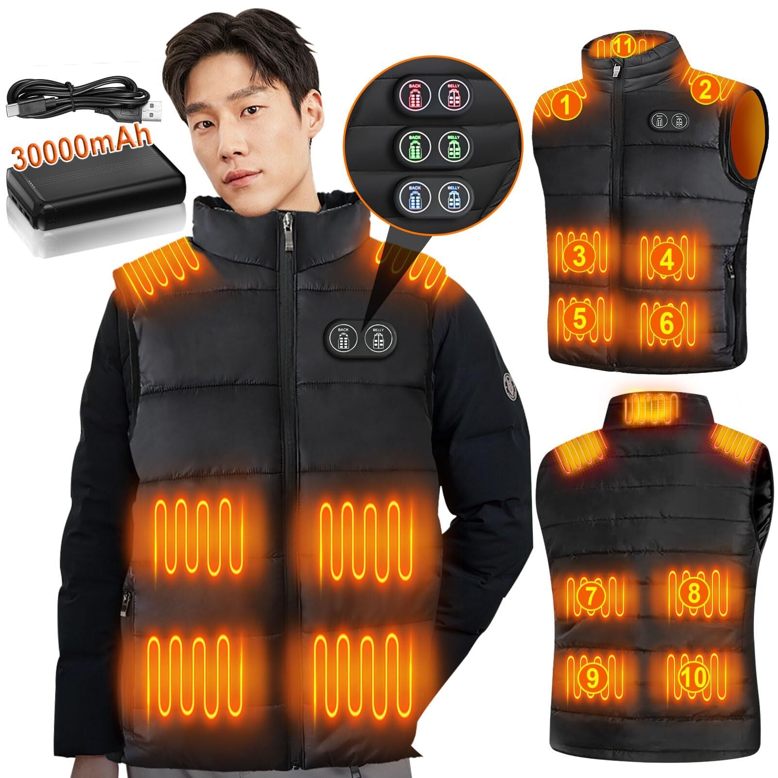 [Setiepp] 令和6年新登場デザイン 電熱ベスト 11箇所発熱 30000mAh大容量バッテリー付き 速暖 前後独立加熱ベスト 3段階温度調整 ヒーターベスト 5秒速暖 丸洗いでき 防寒ベスト 男女兼用 釣り アウトドア 防寒対策