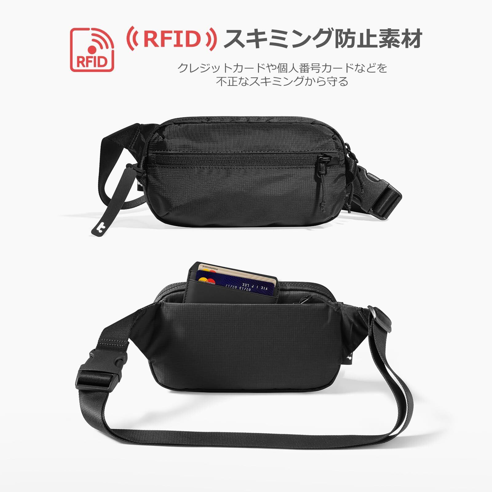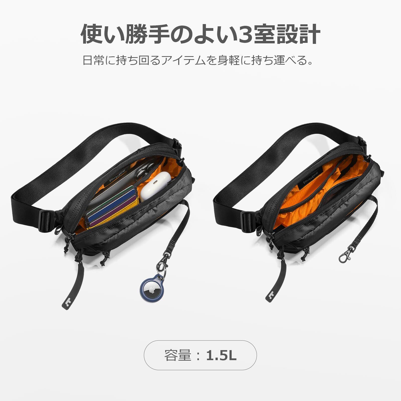 tomtoc ボディバッグ 軽量 小さめ スリングバッグ ミニバッグ 撥水 ワンショルダーバッグ メンズポーチ 旅行 お出掛け メンズ レディース サイクリング アウトドア 散歩 ランニング 1.5L ブラック