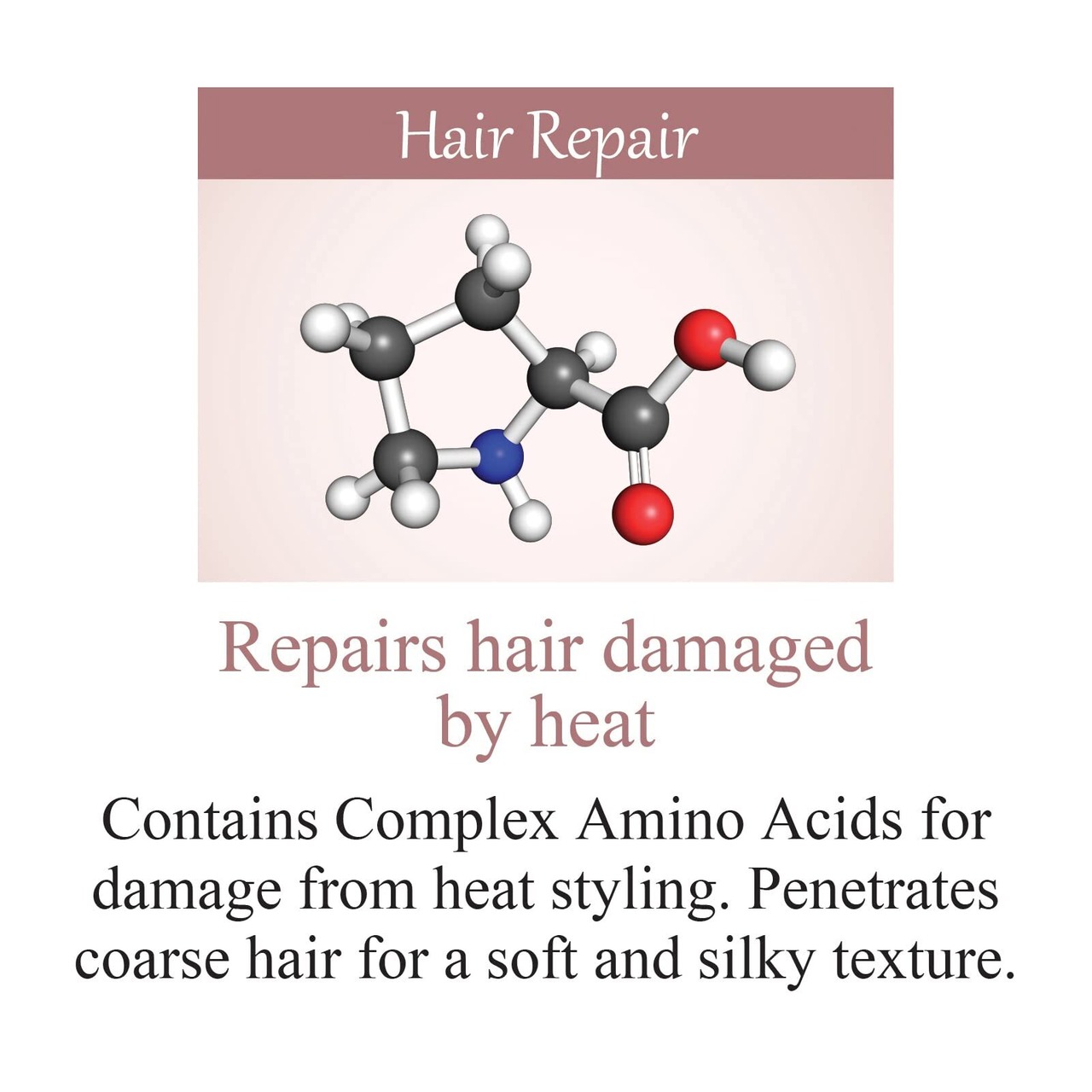 ドライヤーやアイロンによる熱ダメージを受けて硬くなった毛髪に作用するアミノ酸配合。