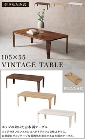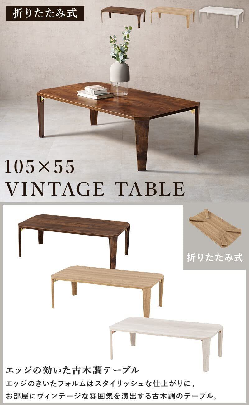 【在庫セール】萩原 ローテーブル センターテーブル テーブル 机 【木目調天板がスタイリッシュ】 折りたたみ 完成品 軽量 ヴィンテージ リビング ソファテーブル 幅105×奥行55×高さ32 ホワイト MT-6866WS | ニコニコSHOP