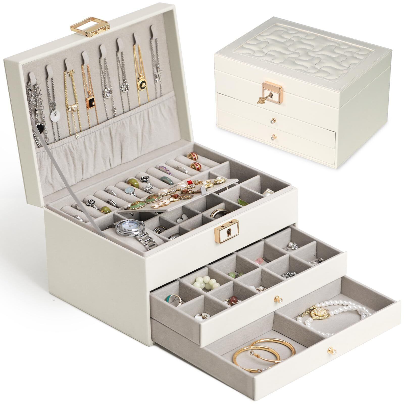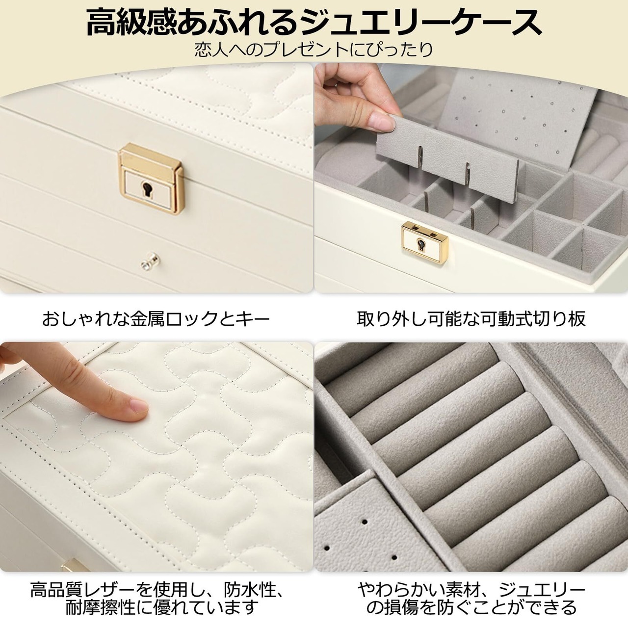 Yoobao アクセサリーケース おしゃれ 引き出しジュエリーボックス 大容量 鍵付き 3層アクセサリー収納 PUレザー 指輪ケース ネックレス イヤリング ピアス ブレスレットなど小物入れ 着脱式の仕切り付き 宝石箱 女性 jewelry box organizer レディース 母の日 クリスマス 結婚式 記念日 誕生日 プレゼント用 (ホワイト)