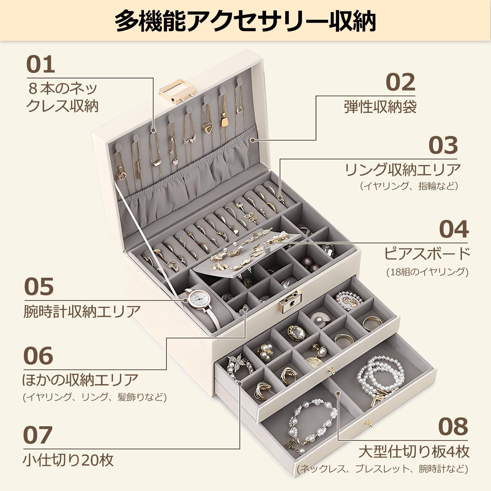 【2022最新】Yoobao アクセサリーケース おしゃれ 引き出しジュエリーボックス 大容量 鍵付き 3層アクセサリー収納 PUレザー 指輪ケース ネックレス イヤリング ピアス ブレスレットなど小物入れ 着脱式の仕切り付き 宝石箱 女性 jewelry box organizer レディース 母の日 クリスマス 結婚式 記念日 誕生日 プレゼント用 (ホワイト) | ニコニコSHOP