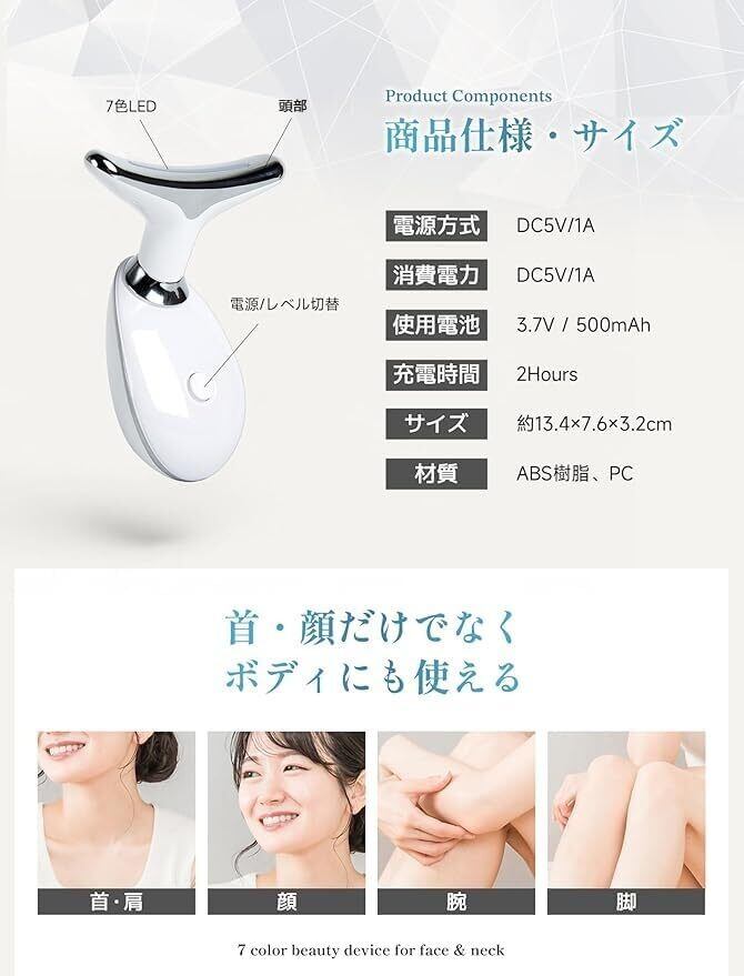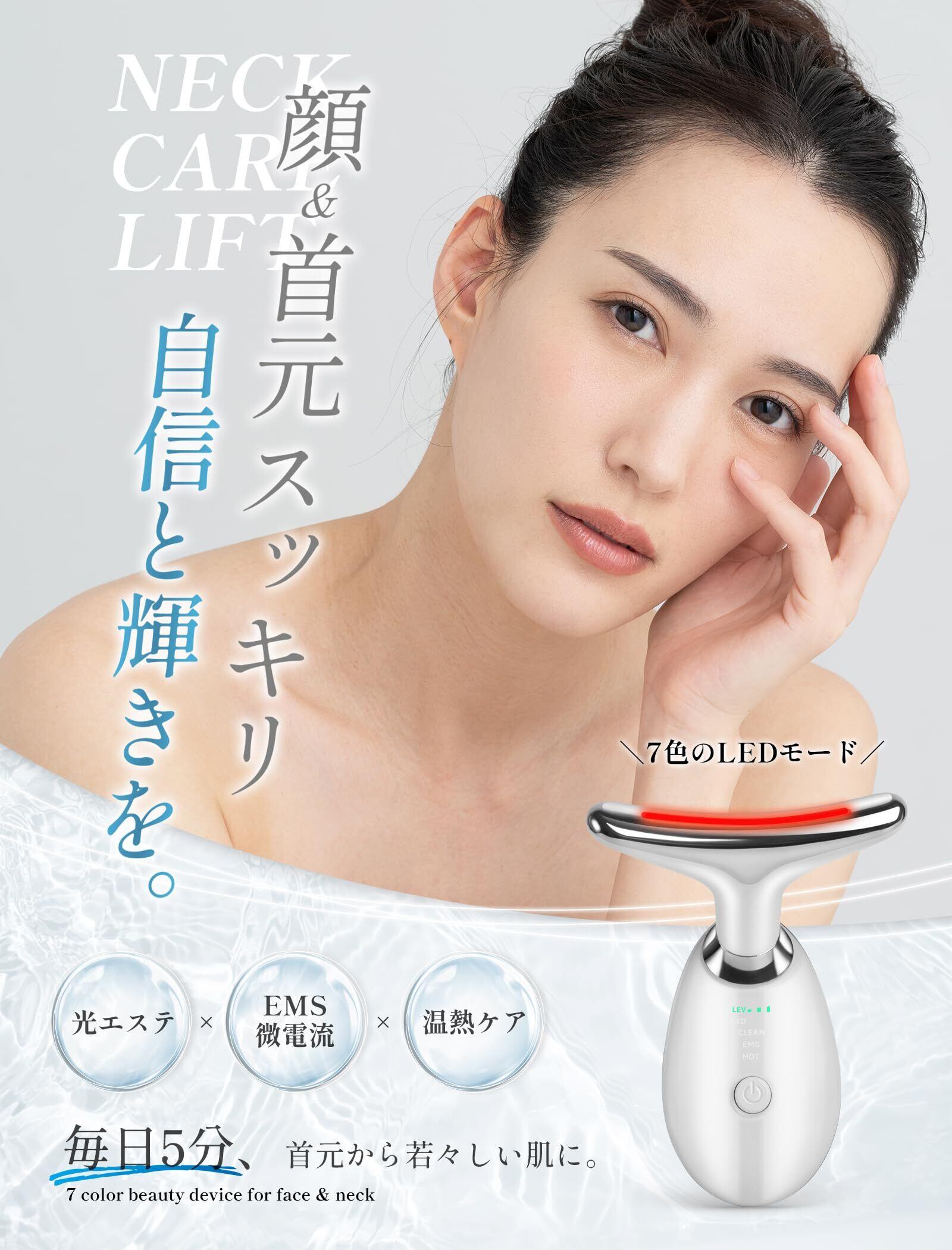 美顔器 EMS リフトケア 7色 光エステ かっさ 美顔ローラー 多機能 フェイスケア ボディケア 振動 温熱 充電式 軽量 持ち運び便利 母の日 プレゼント ホワイト
